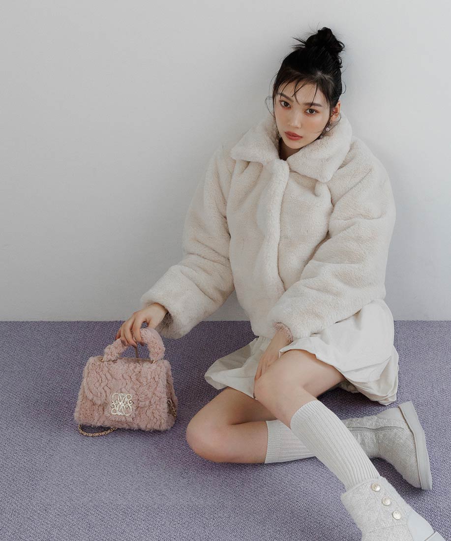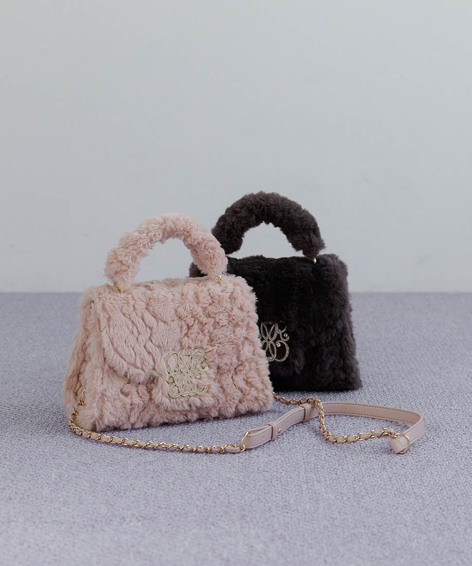 ふんわりとしたフォルムが愛らしいファーショルダーバッグ。