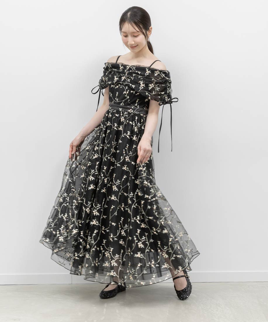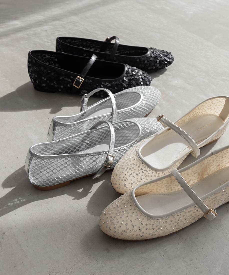 アイボリー・シルバー⇒グリッター生地、チュール生地ブラック⇒スパンコール、チュール生地