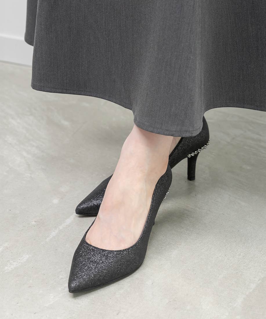 シャイニー・シルバー⇒合成皮革(メタリック)ブラック⇒グリッター生地