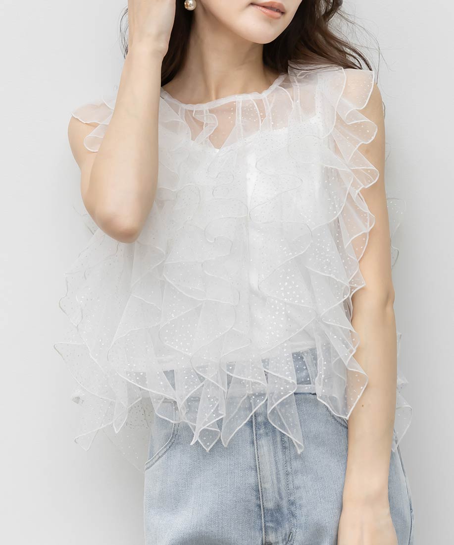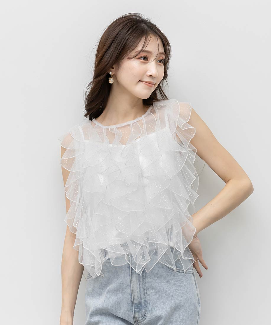 ブラウス⇒ナイロン100%インナーキャミソール⇒ポリエステル100%