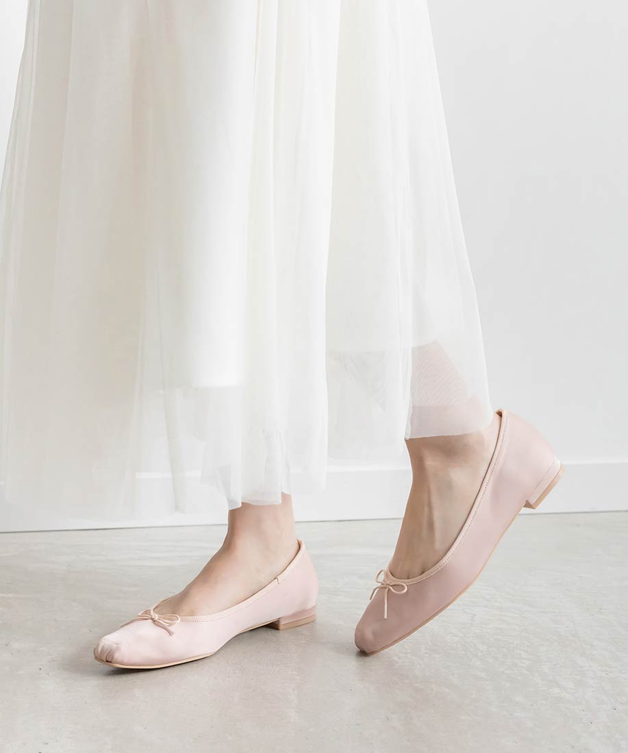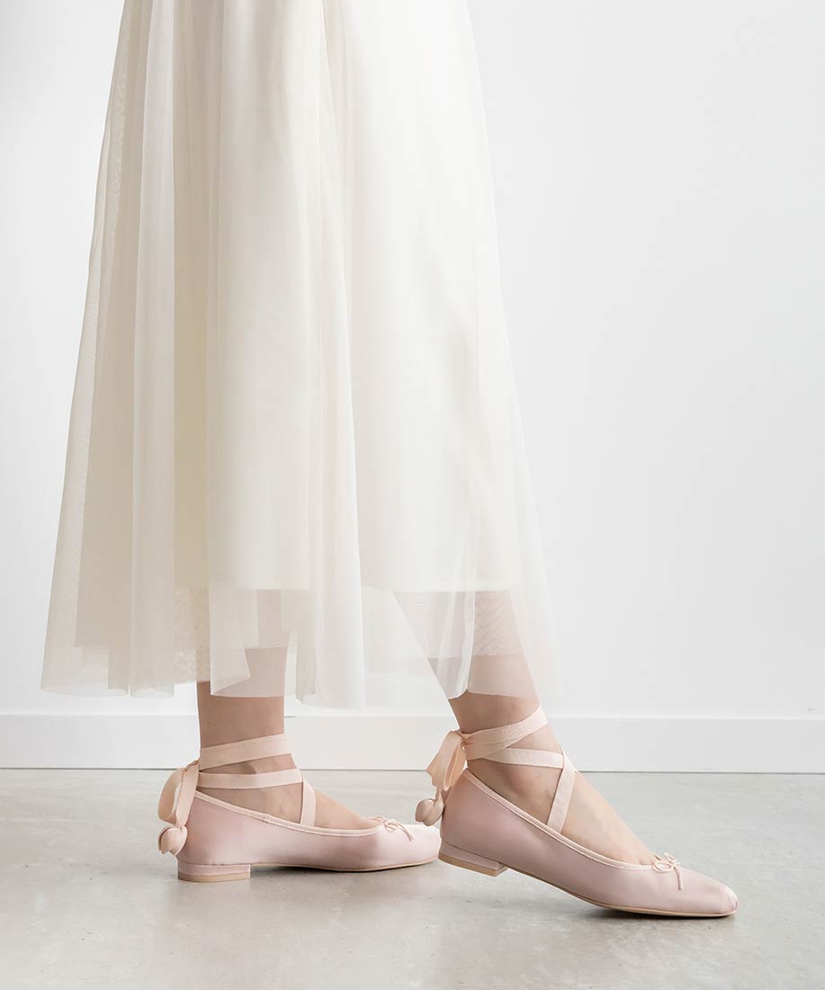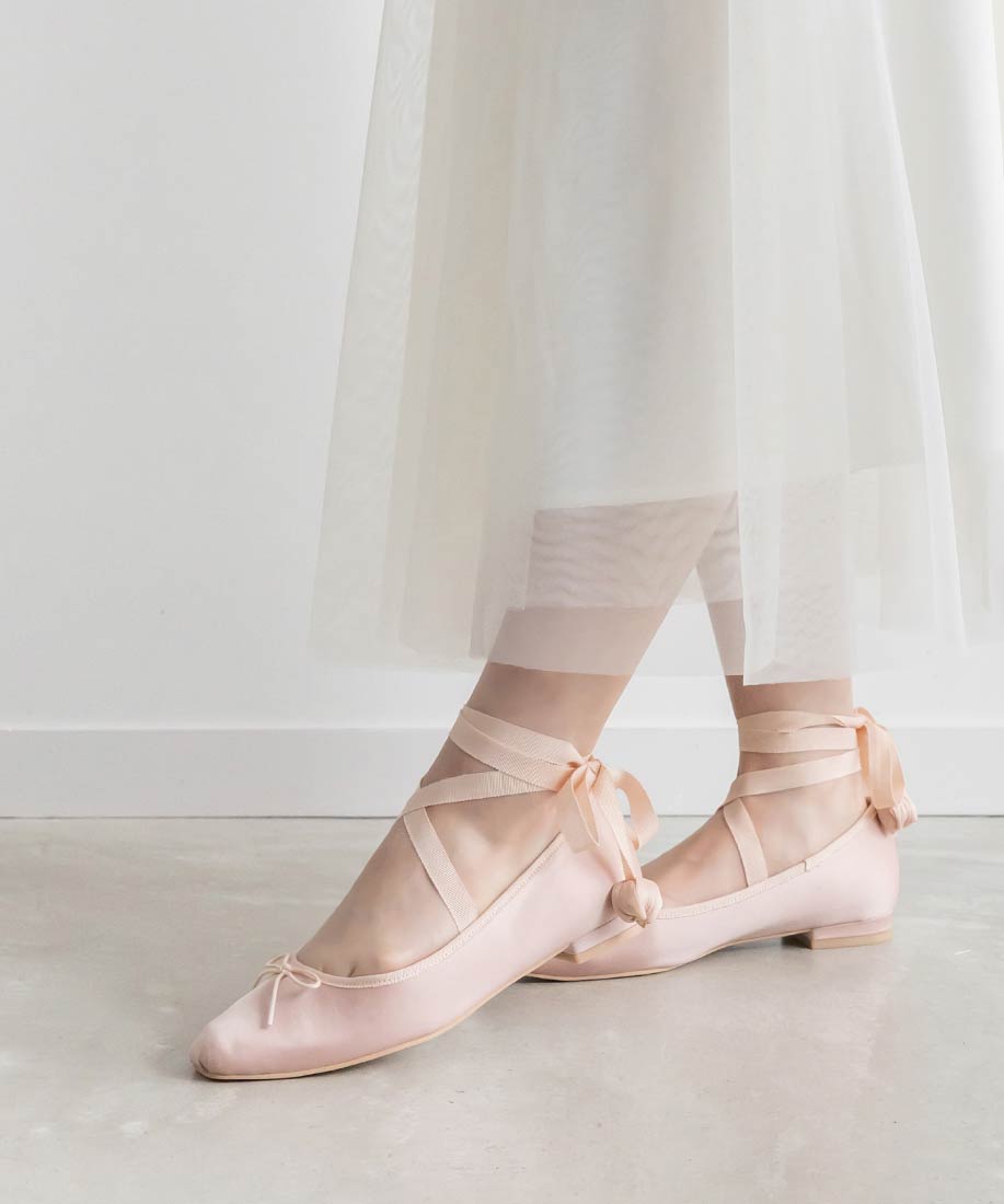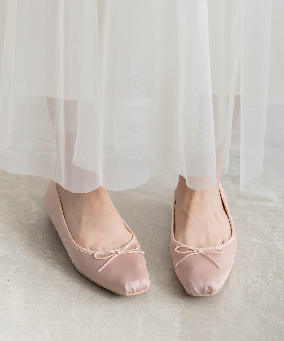 サテンリボンが足元を華奢に見せてくれる、トレンドライクな女性らしい一足です。