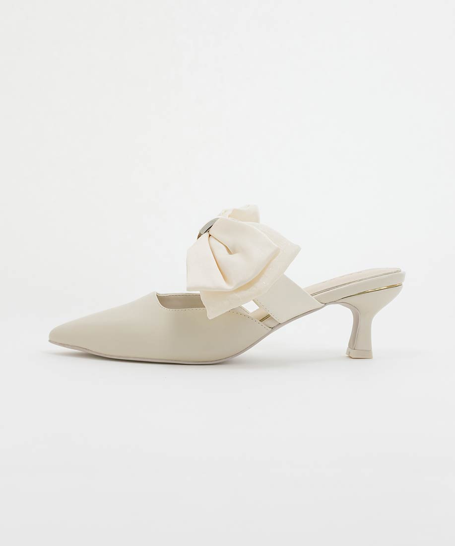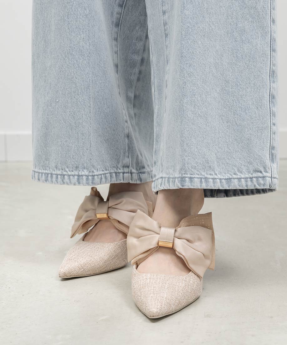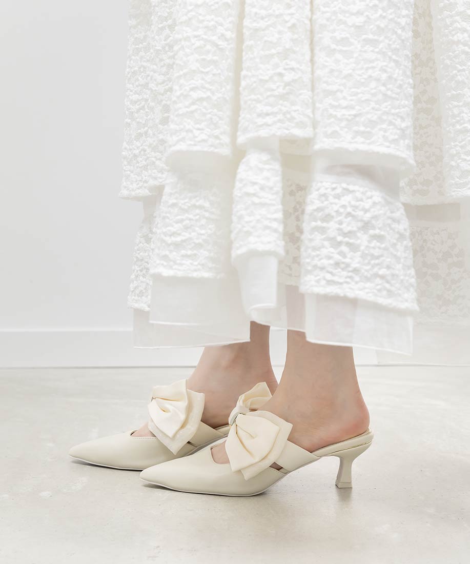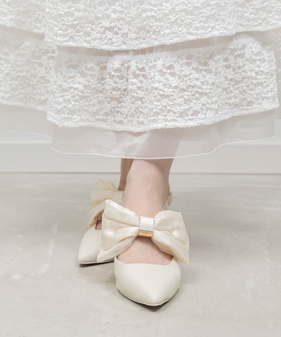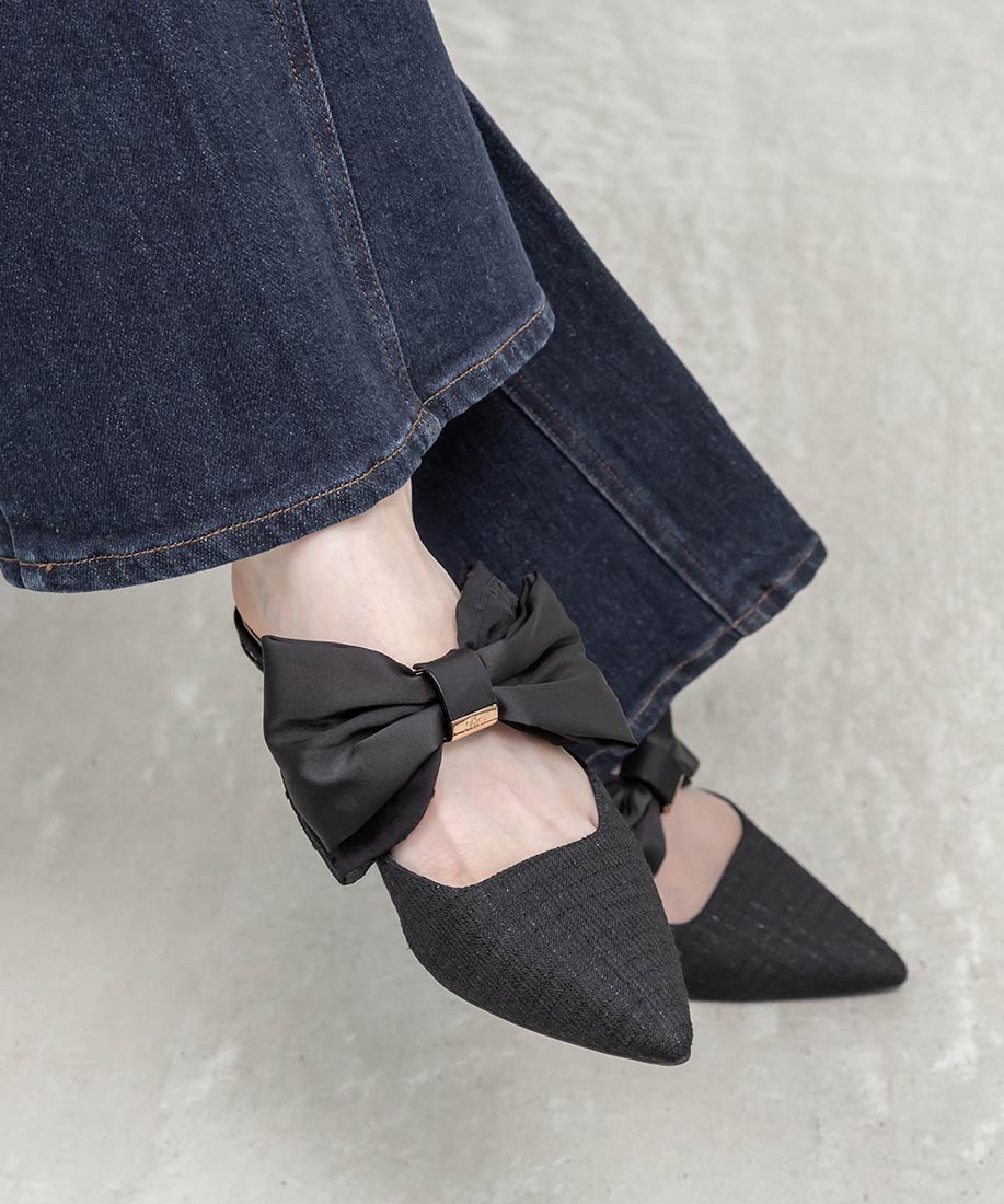 アイボリー⇒合成皮革(スムース)、サテン生地ピンク・ブラック⇒ツイード生地、サテン生地