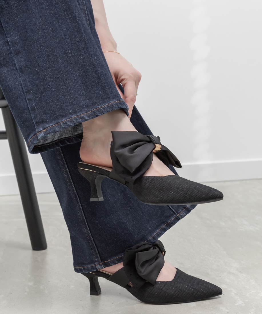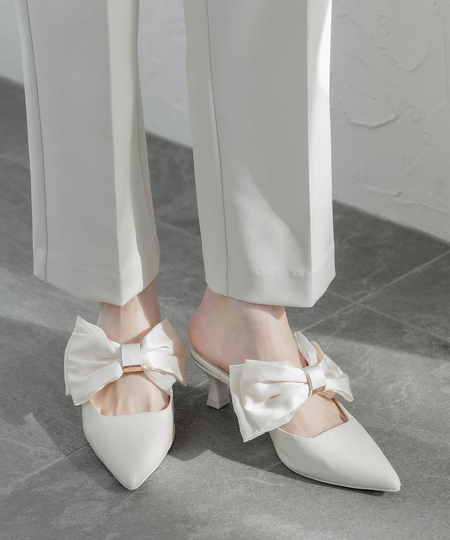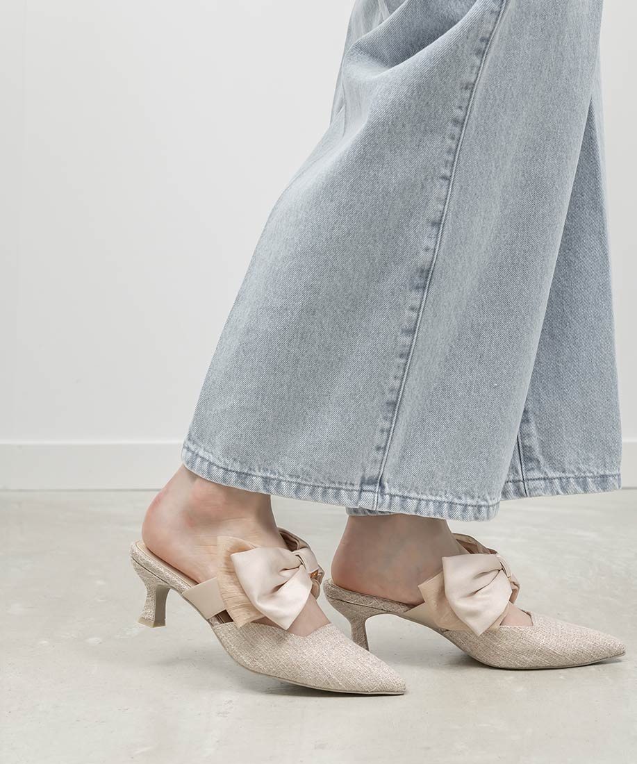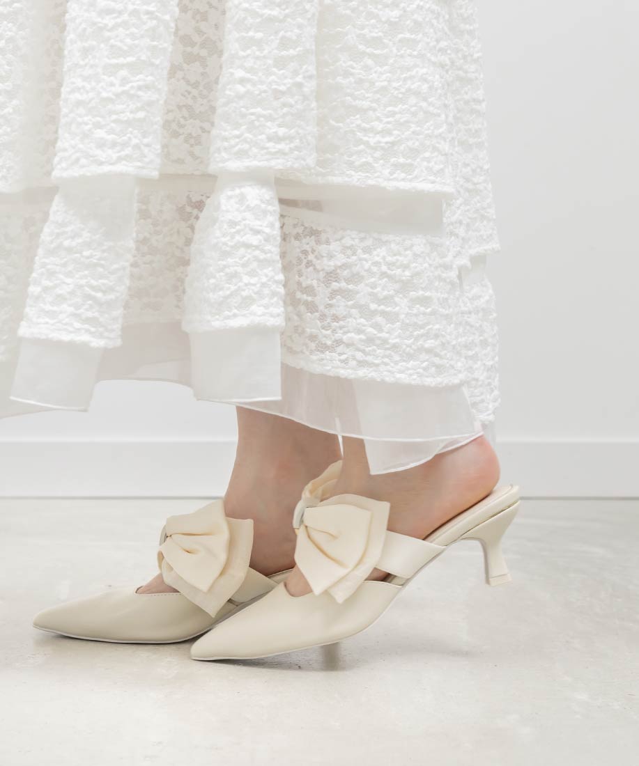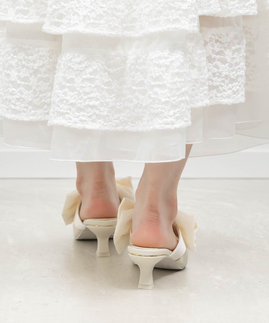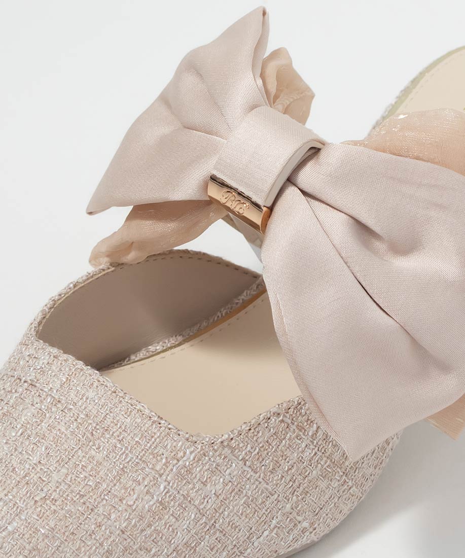 アイボリー⇒合成皮革(スムース)、サテン生地ピンク・ブラック⇒ツイード生地、サテン生地