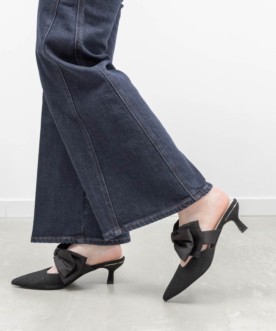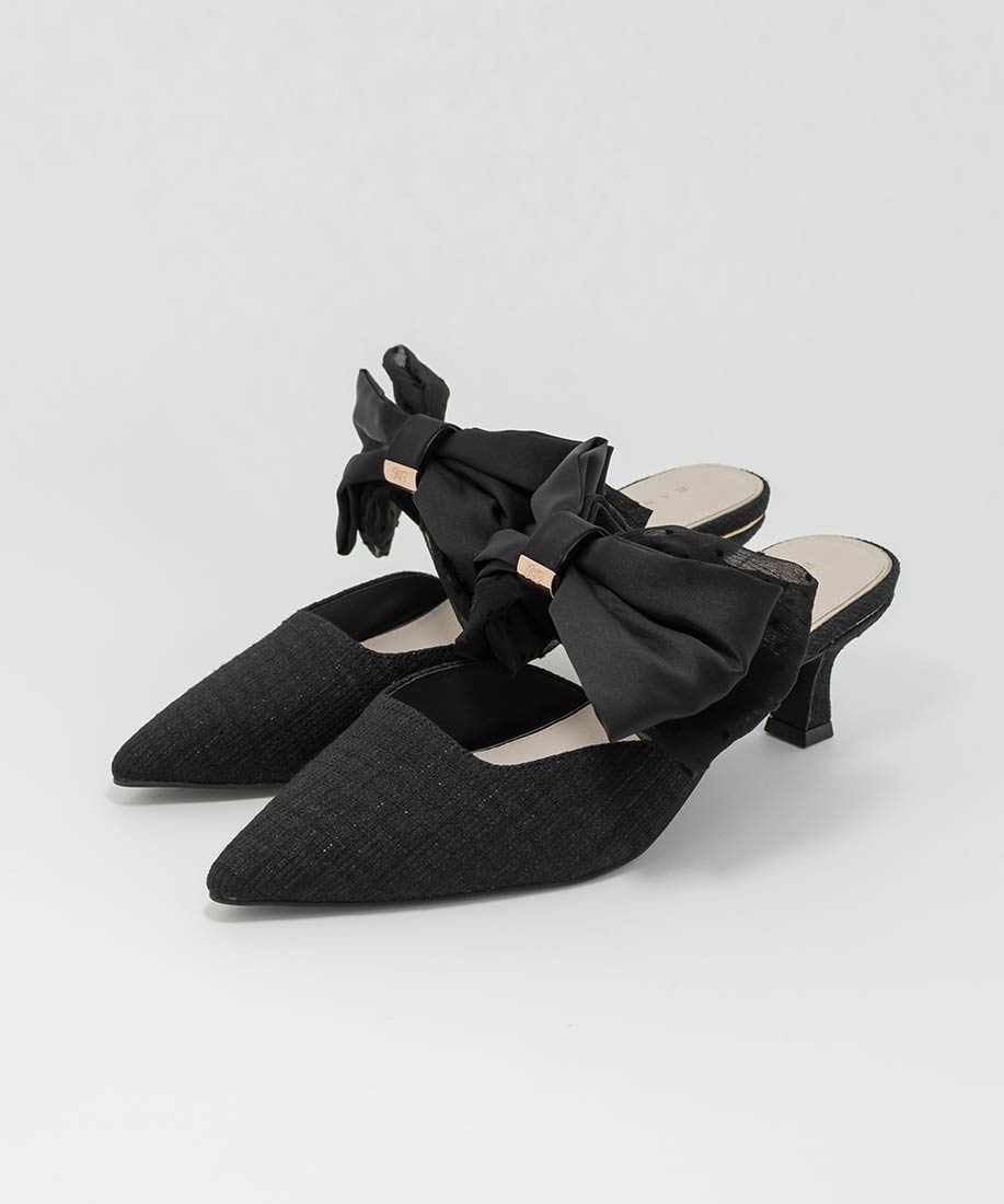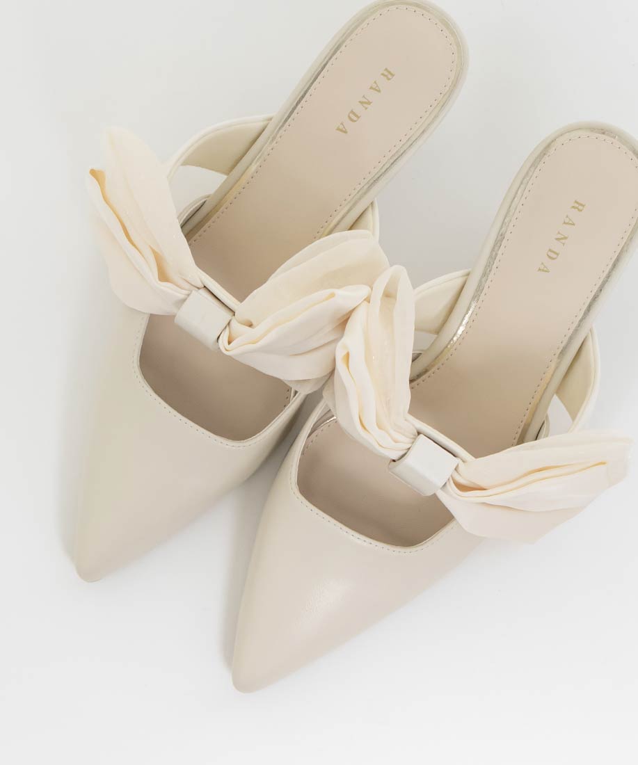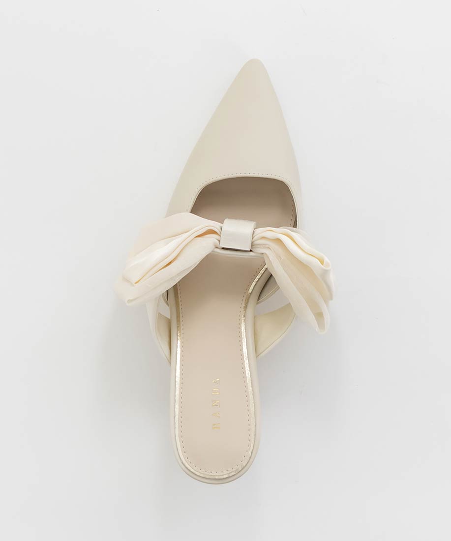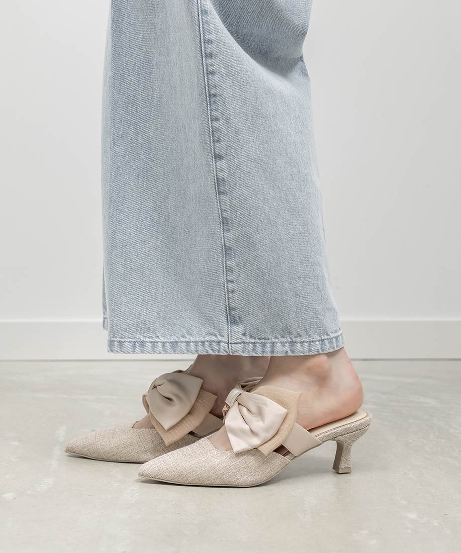 アイボリー⇒合成皮革(スムース)、サテン生地ピンク・ブラック⇒ツイード生地、サテン生地