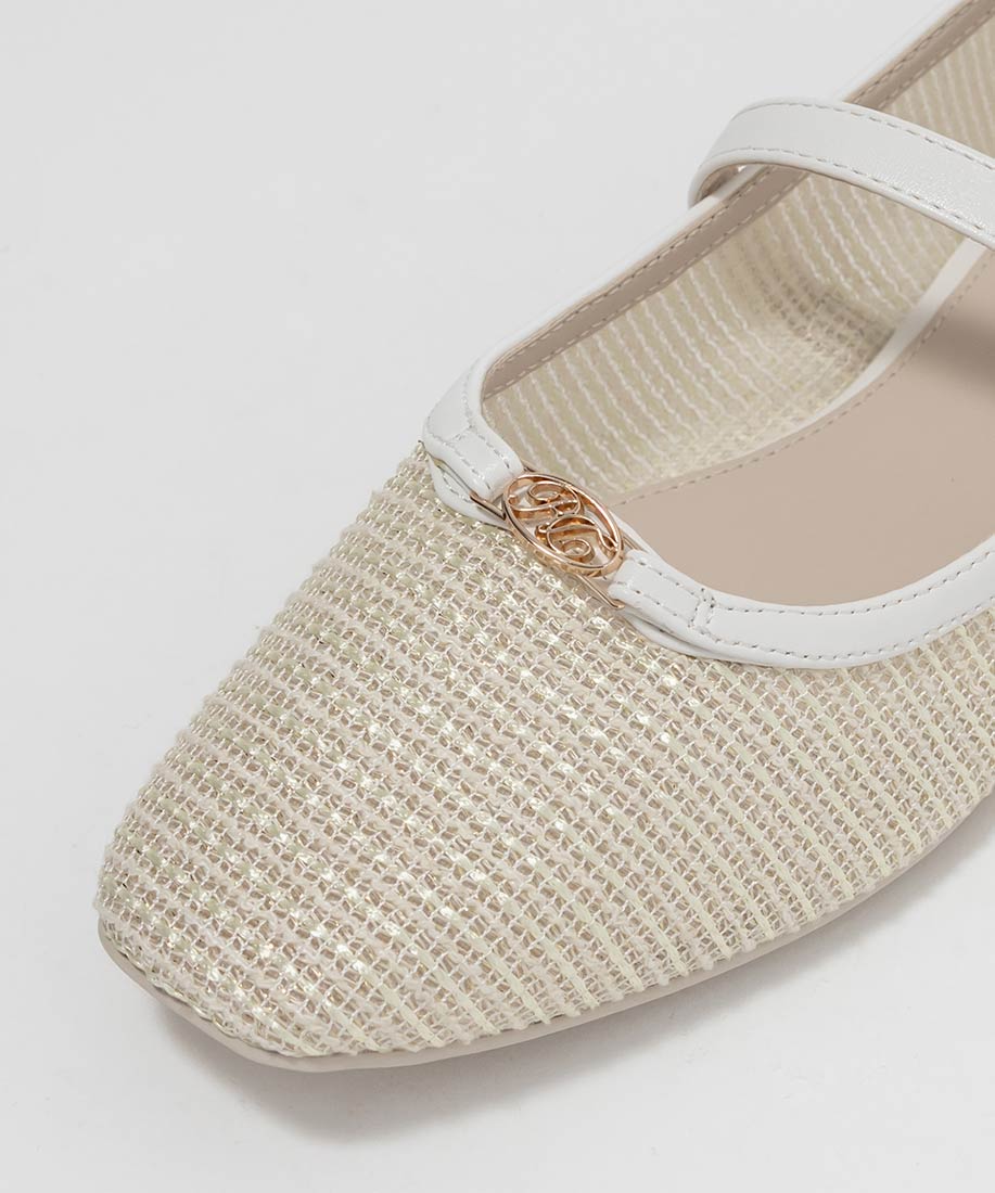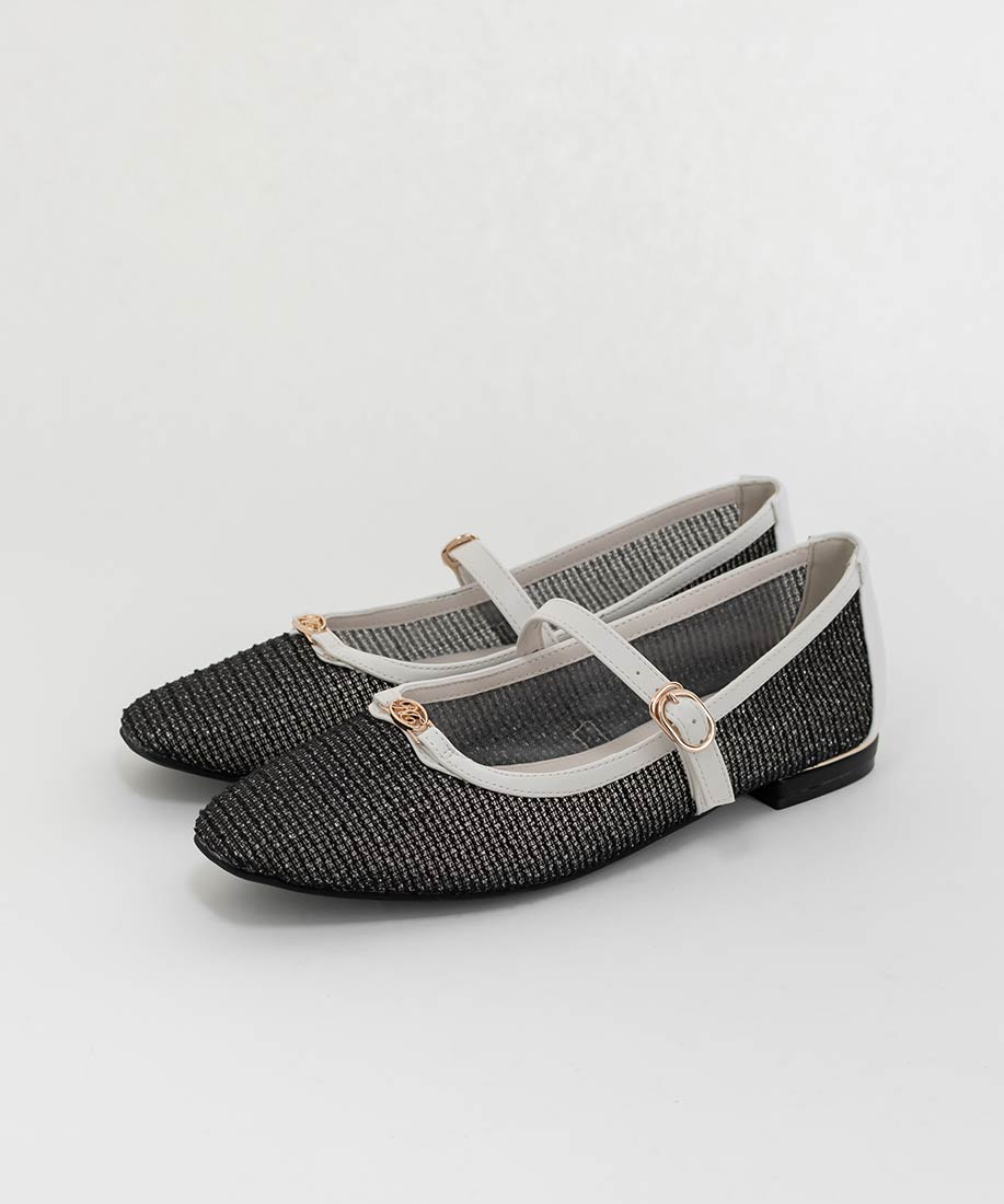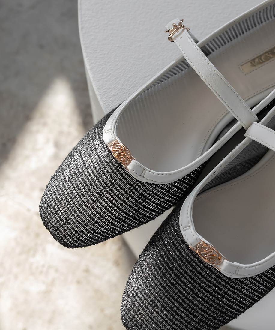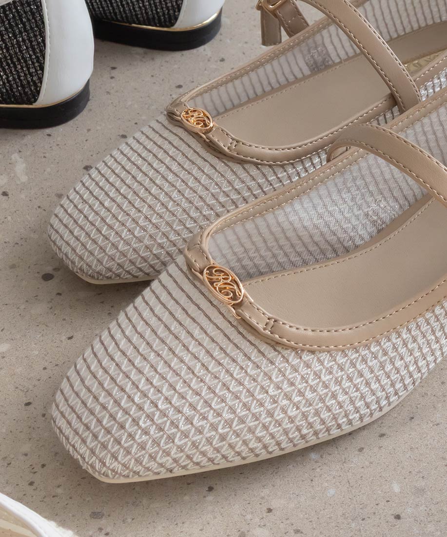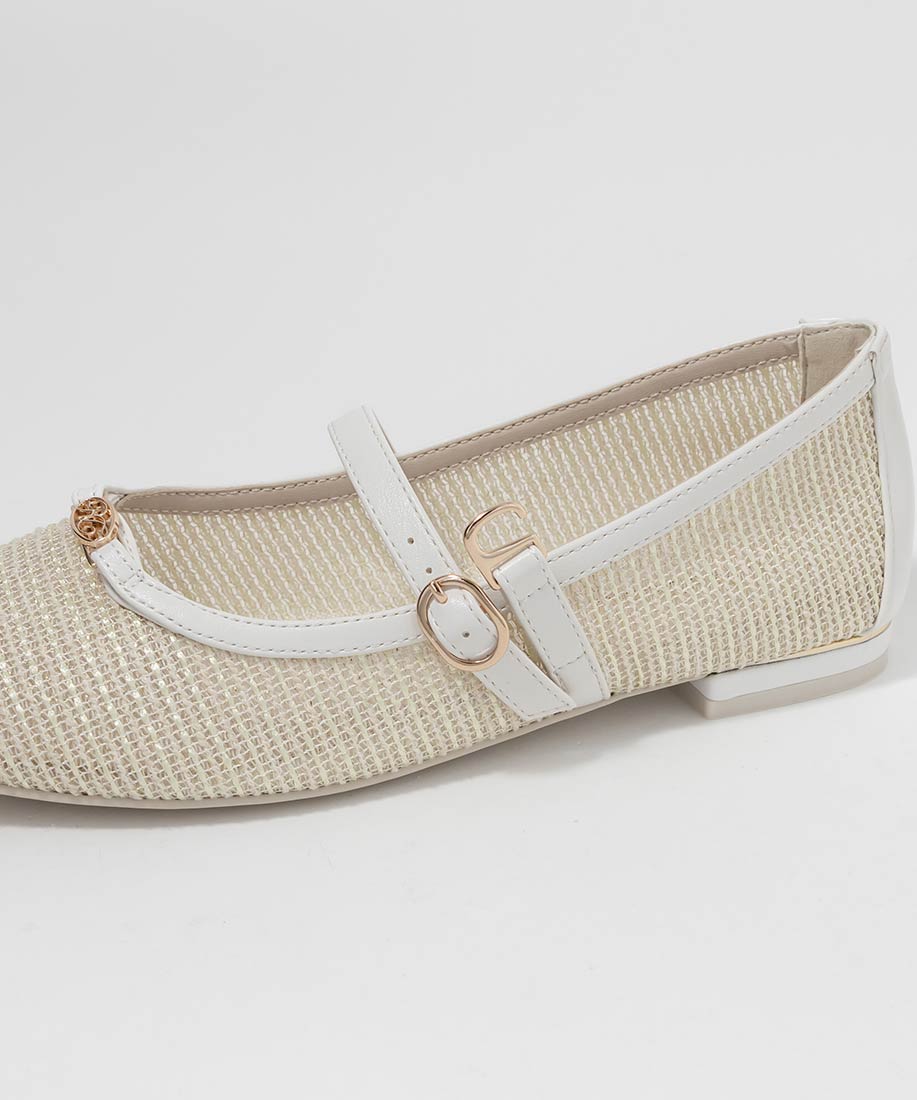 ベーシックなバレエシューズデザインをラメ感のあるメッシュ生地に落とし込んだ、トレンド感溢れるメリージェーンパンプス。