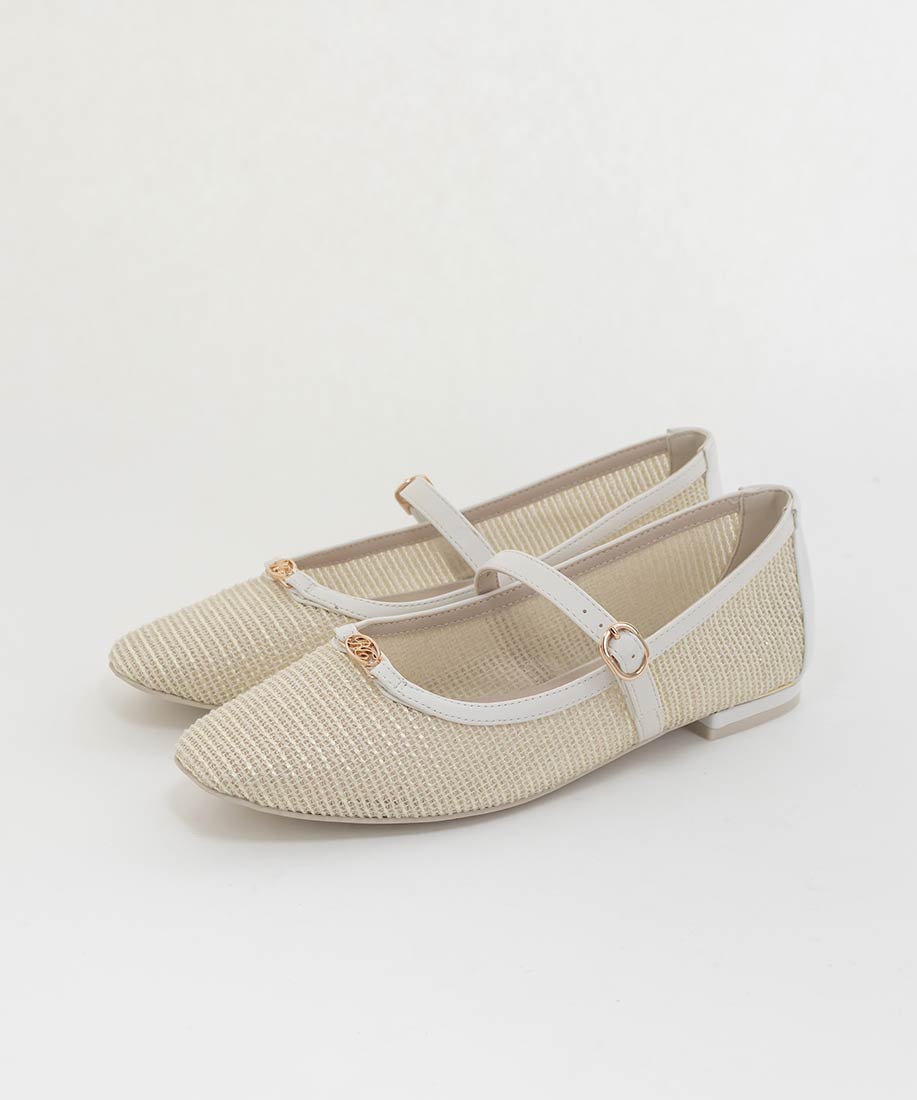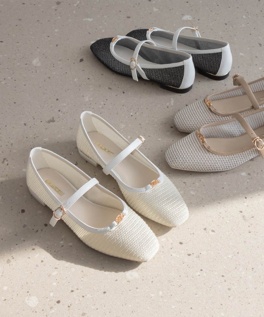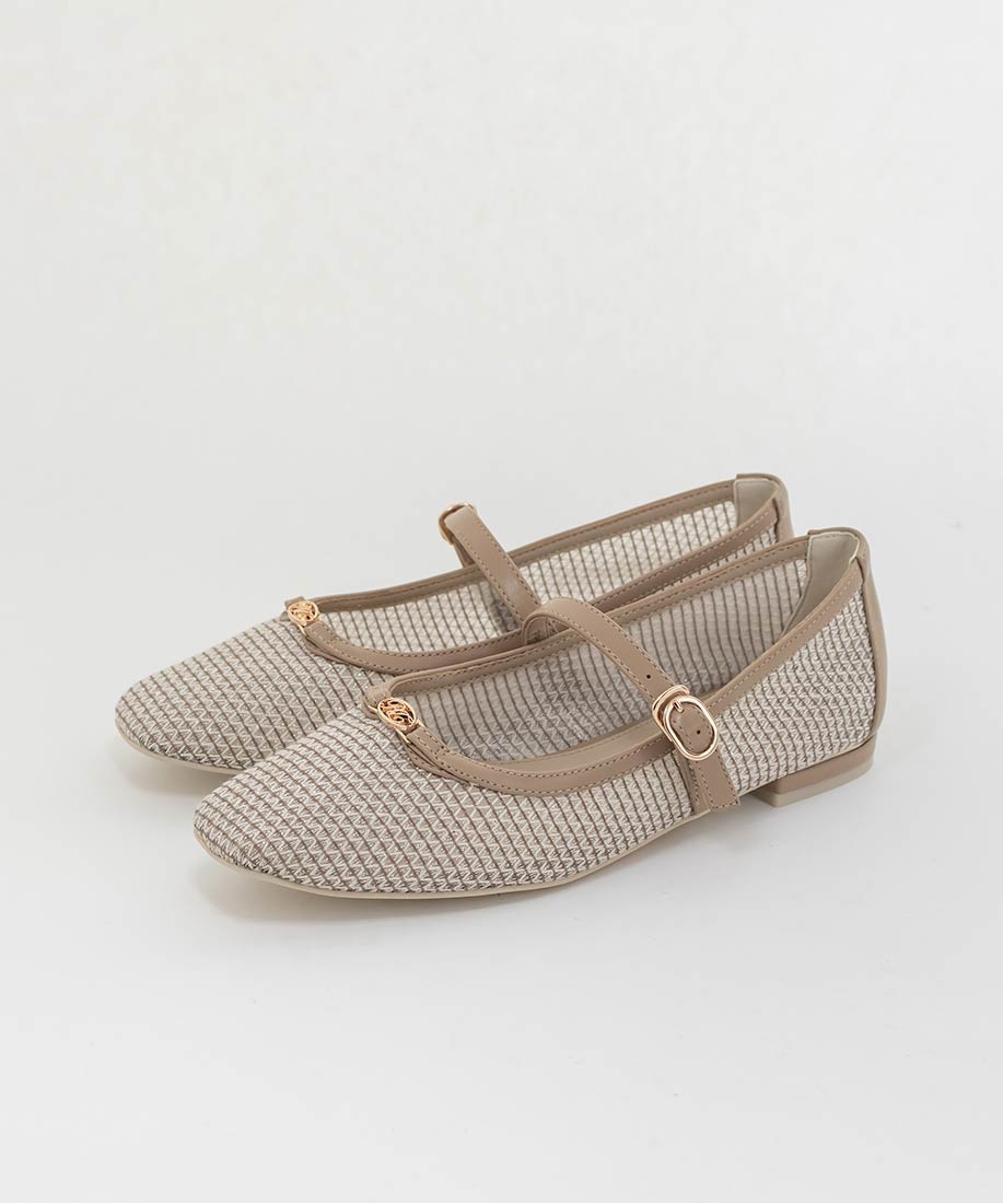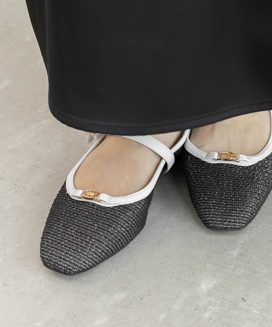 ベーシックなバレエシューズデザインをラメ感のあるメッシュ生地に落とし込んだ、トレンド感溢れるメリージェーンパンプス。