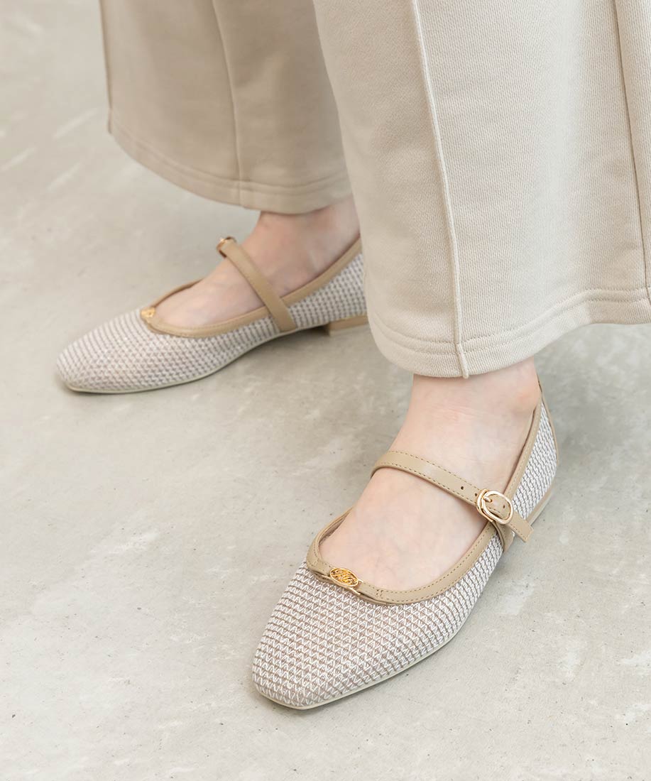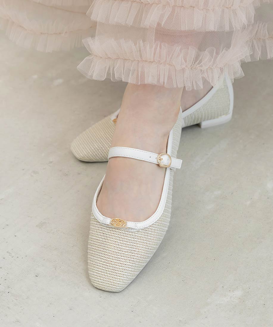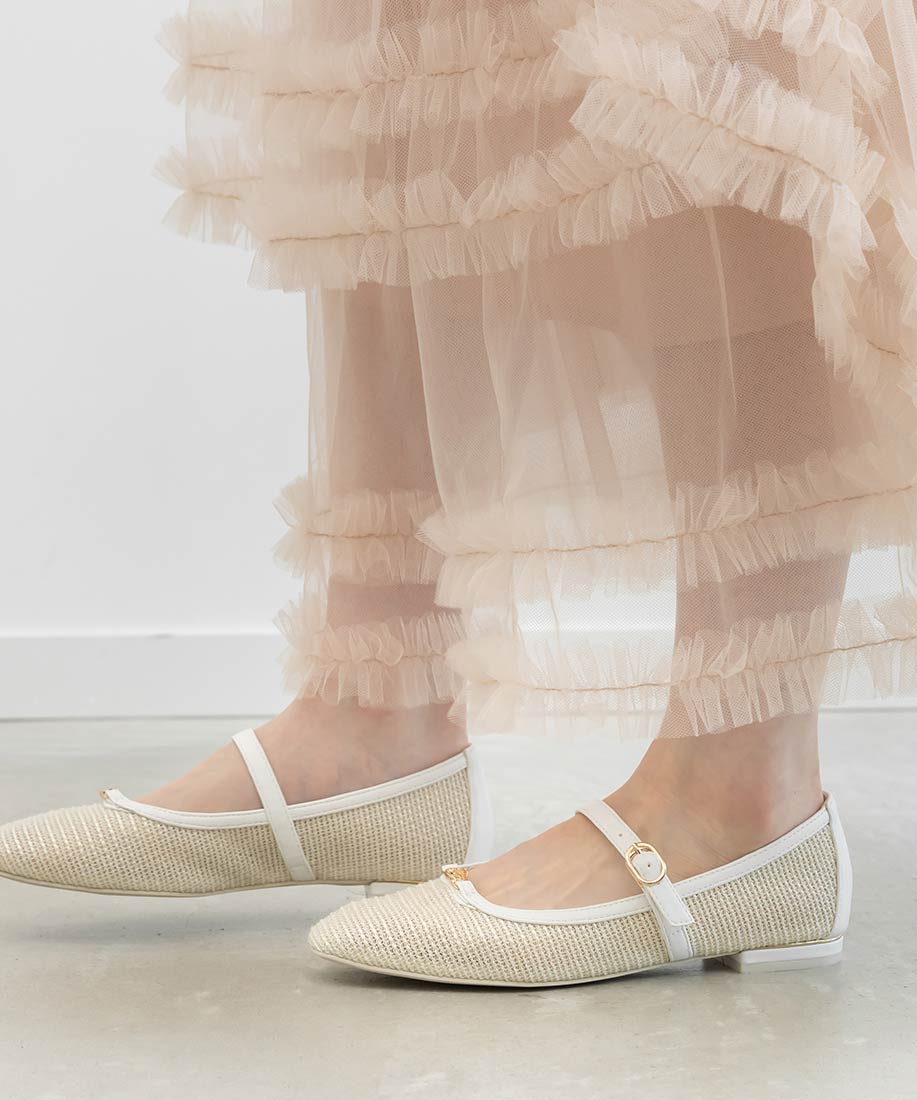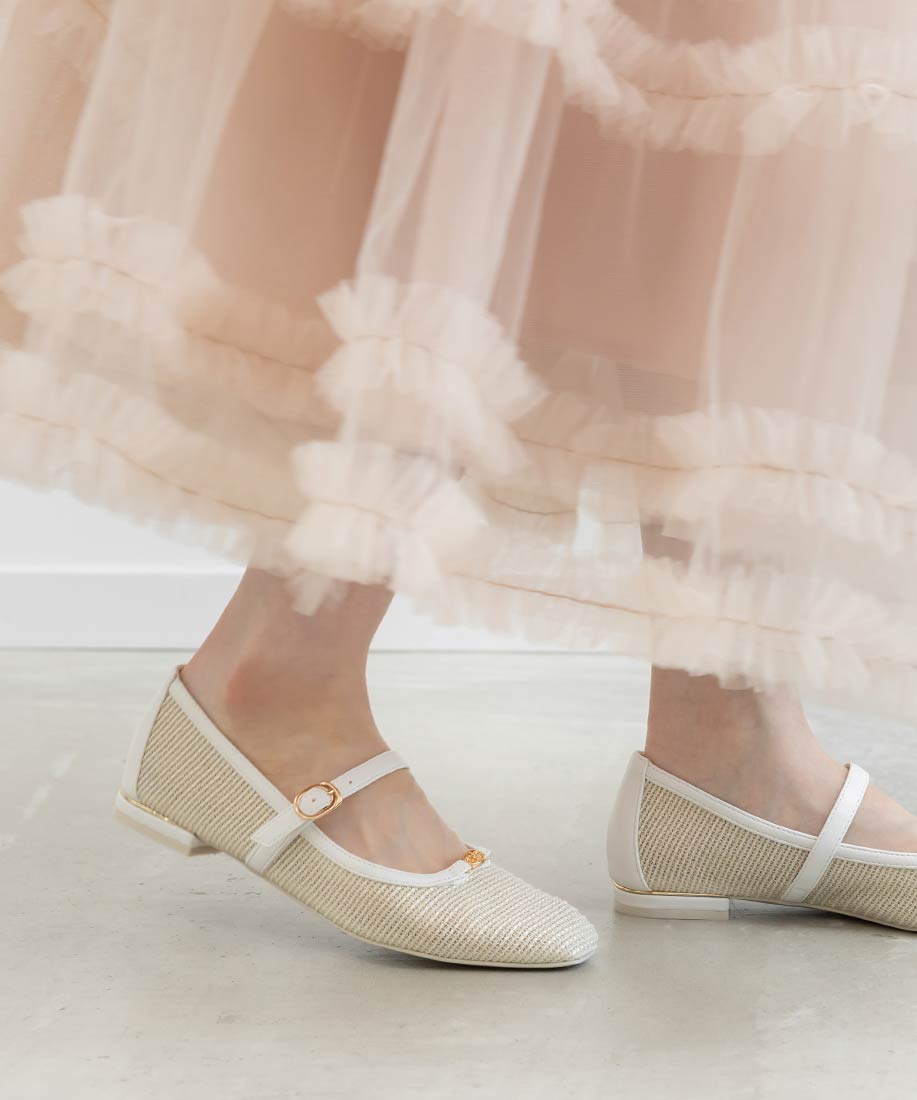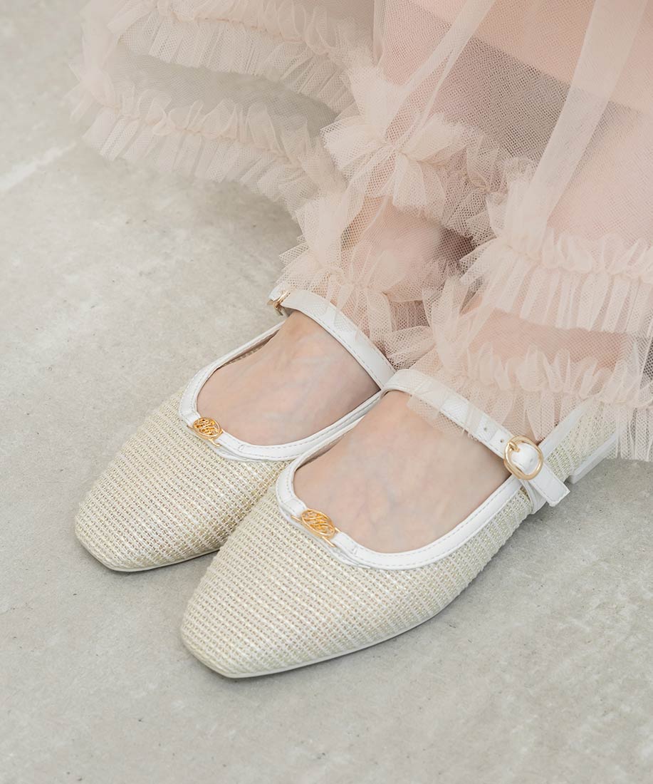 ベーシックなバレエシューズデザインをラメ感のあるメッシュ生地に落とし込んだ、トレンド感溢れるメリージェーンパンプス。