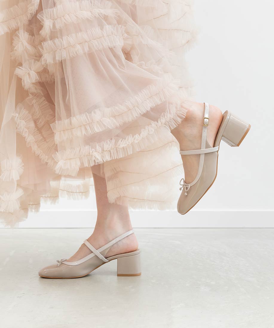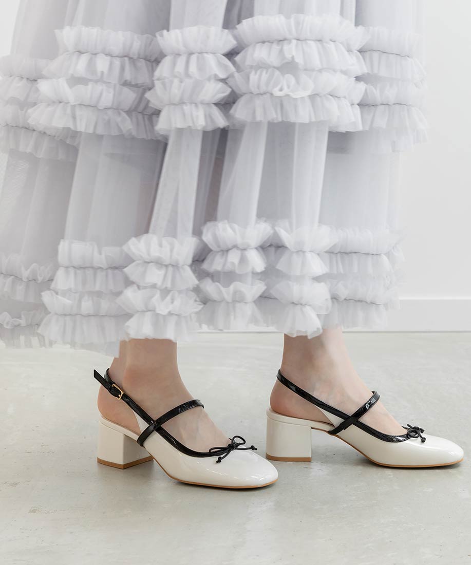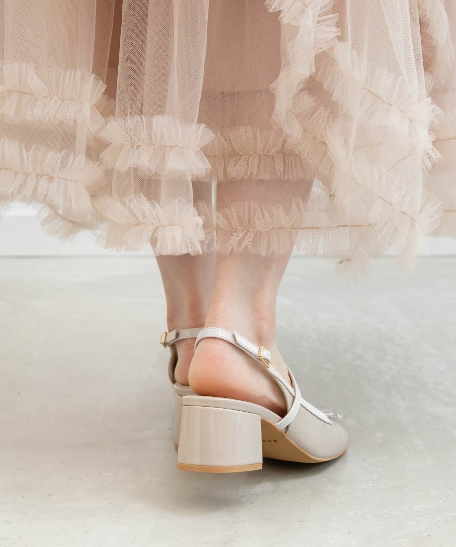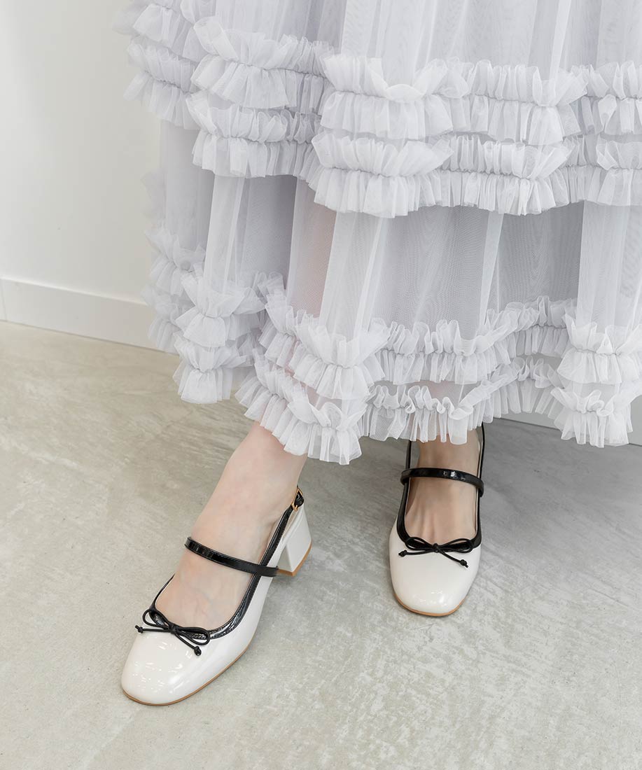 ・丸みを帯びたスクエアトゥがフェミニンな印象