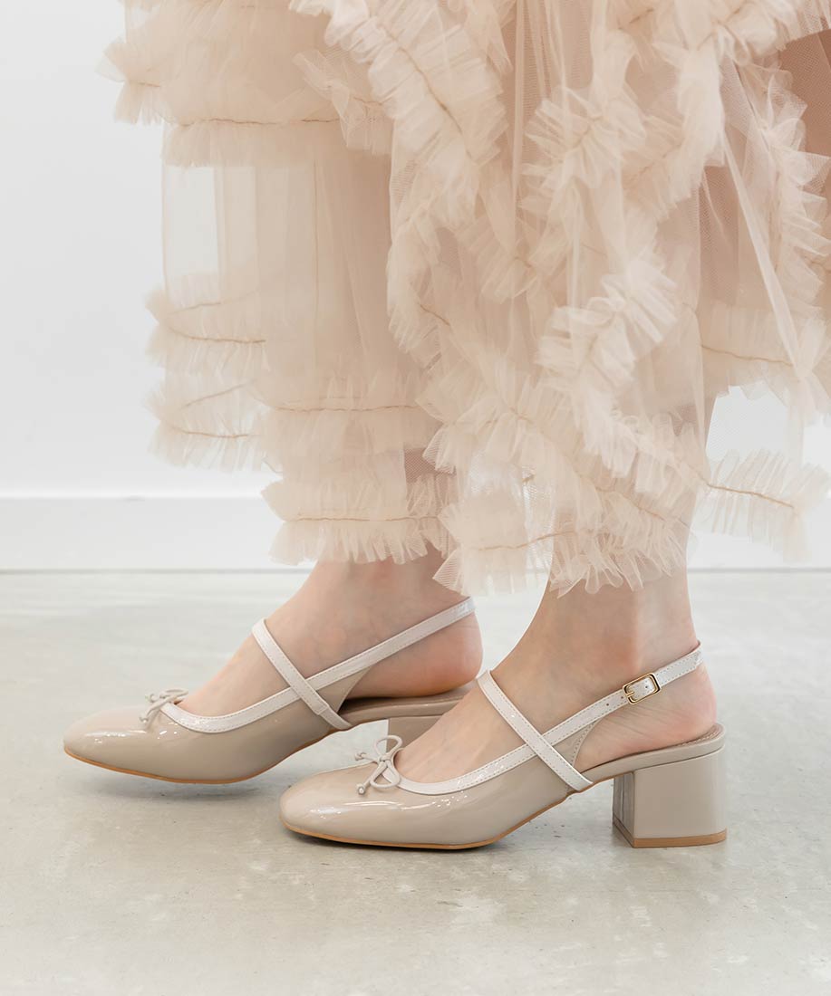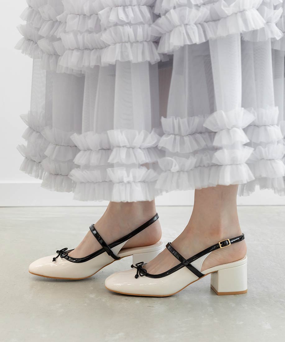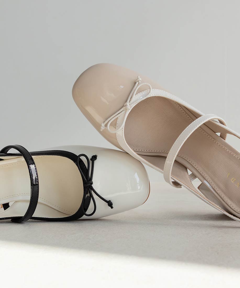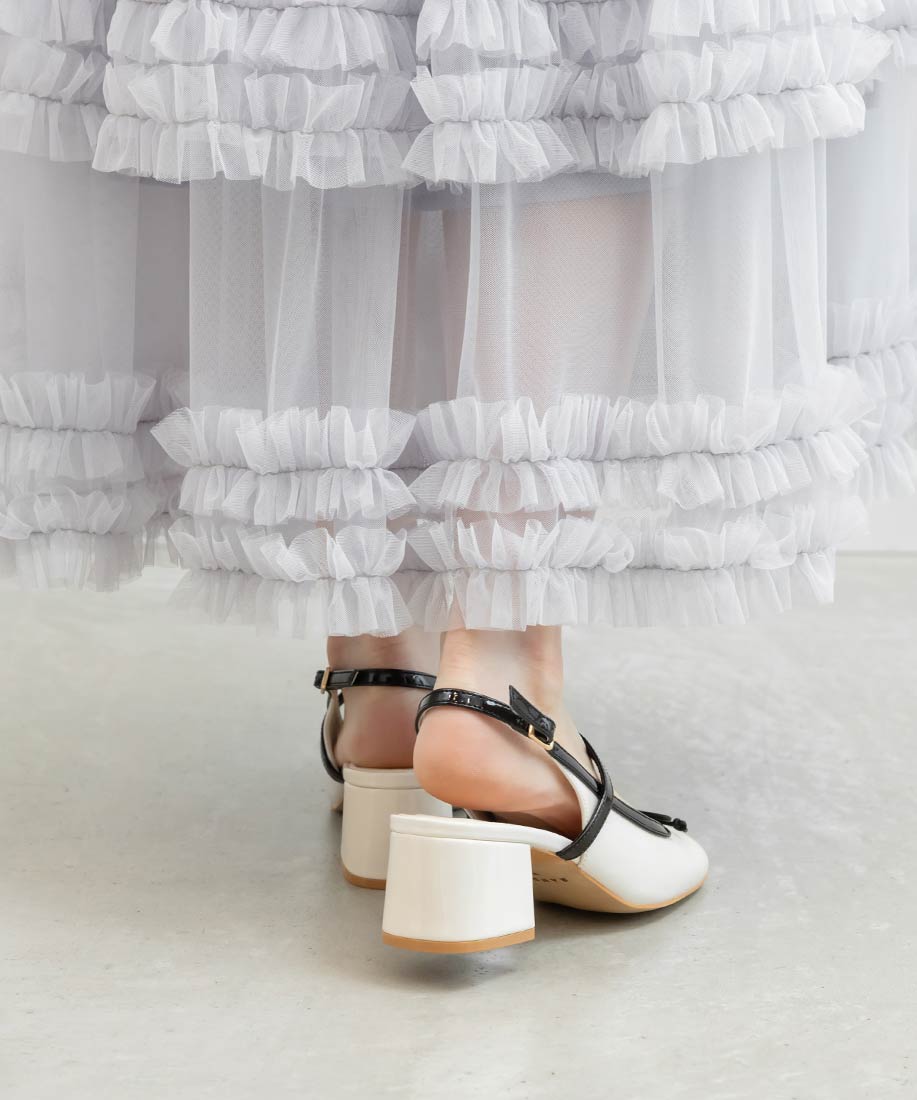 ・丸みを帯びたスクエアトゥがフェミニンな印象