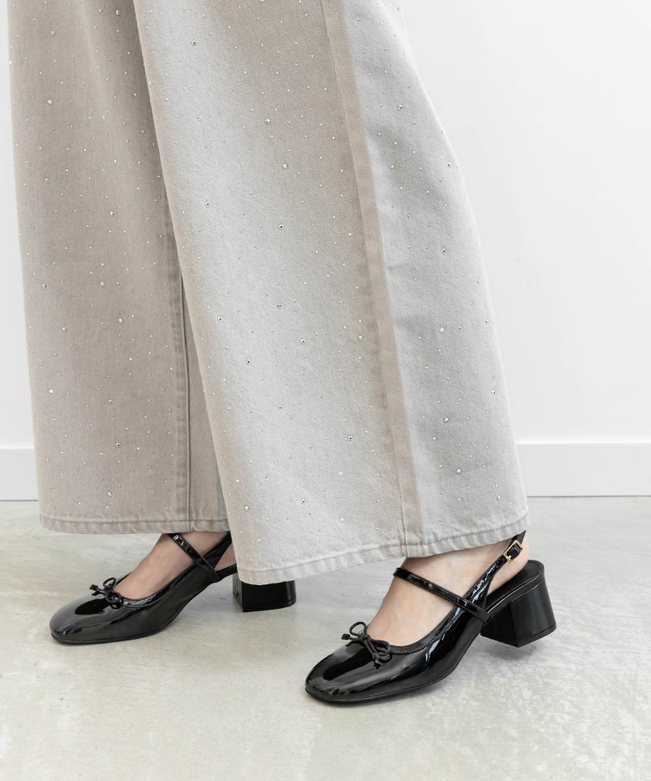 エナメルバックストラップパンプス