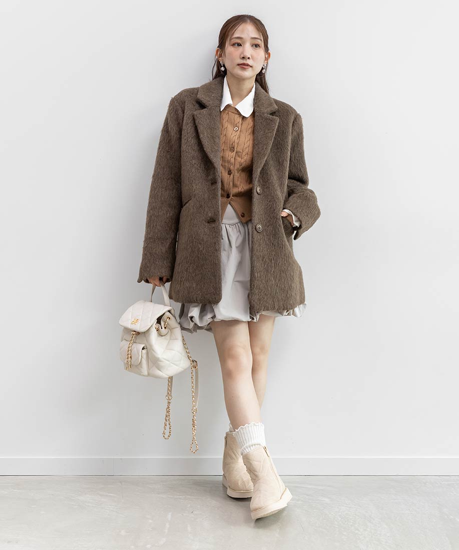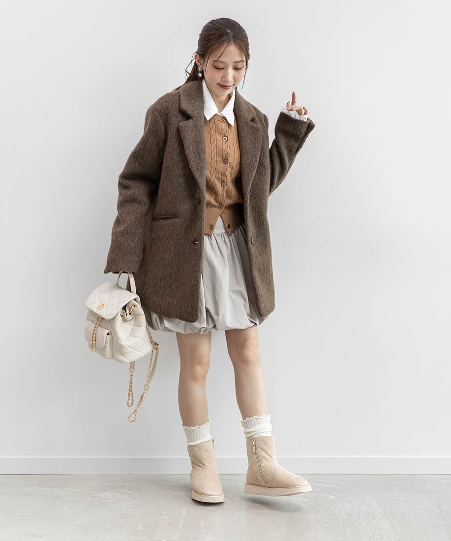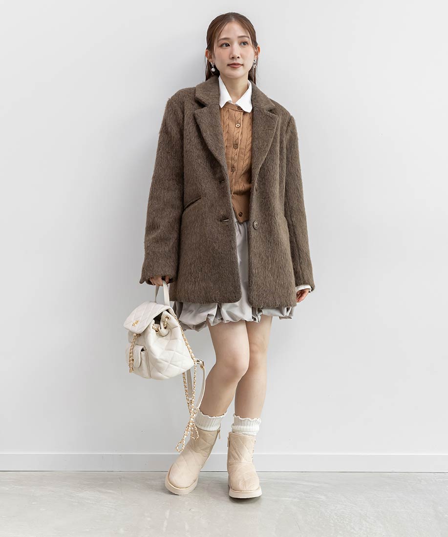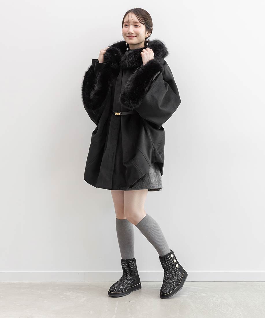アイボリー・ブラック⇒ ツイード生地、フェイクファーベージュ⇒スエード生地、フェイクファー