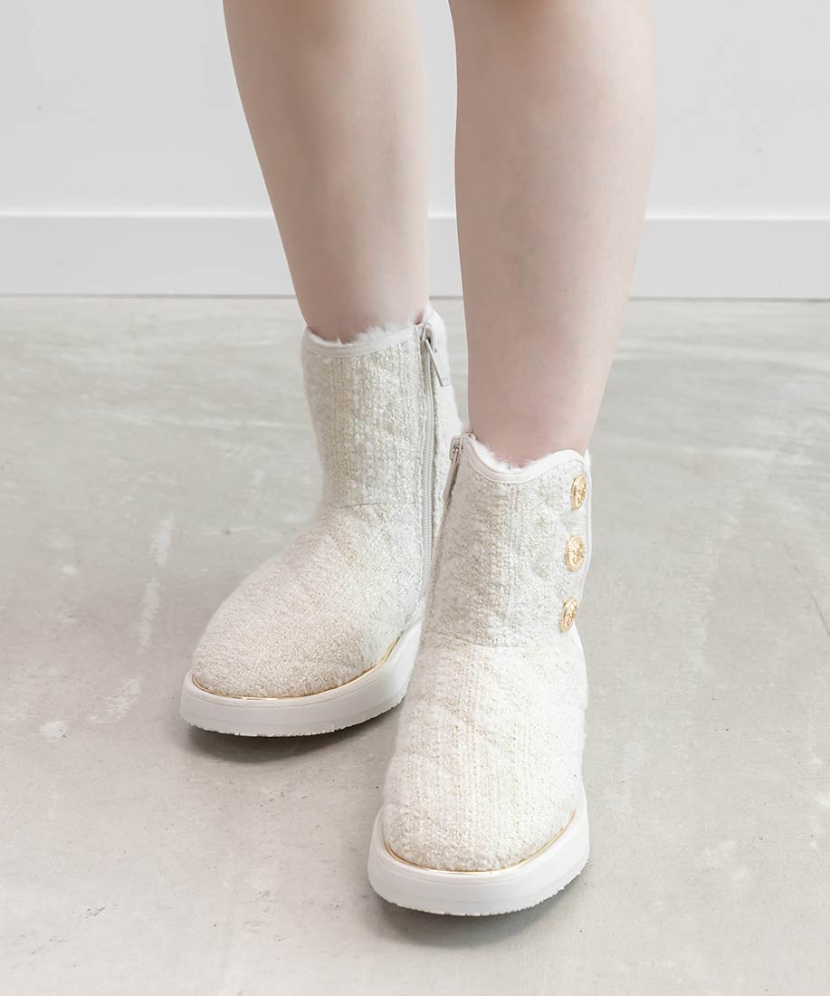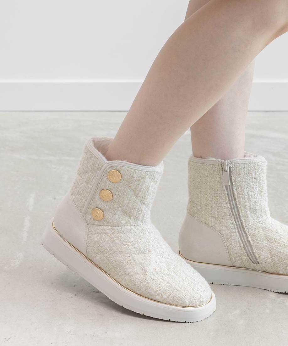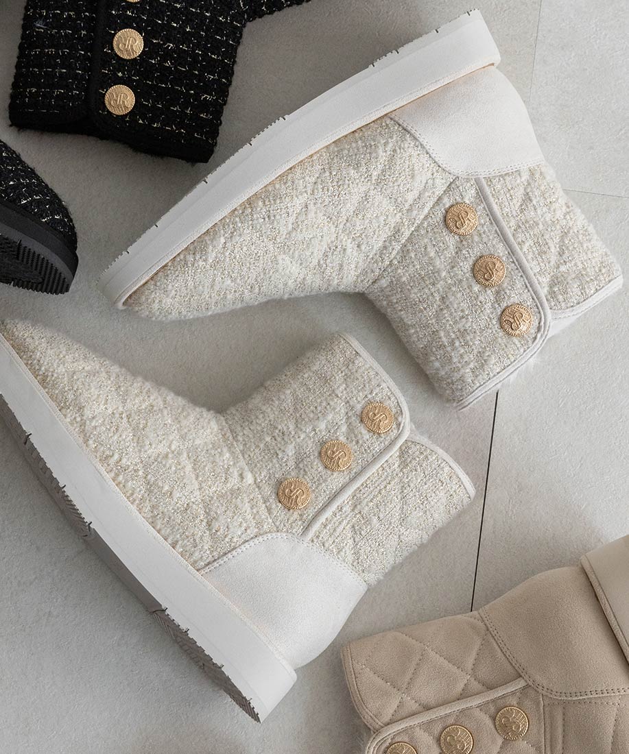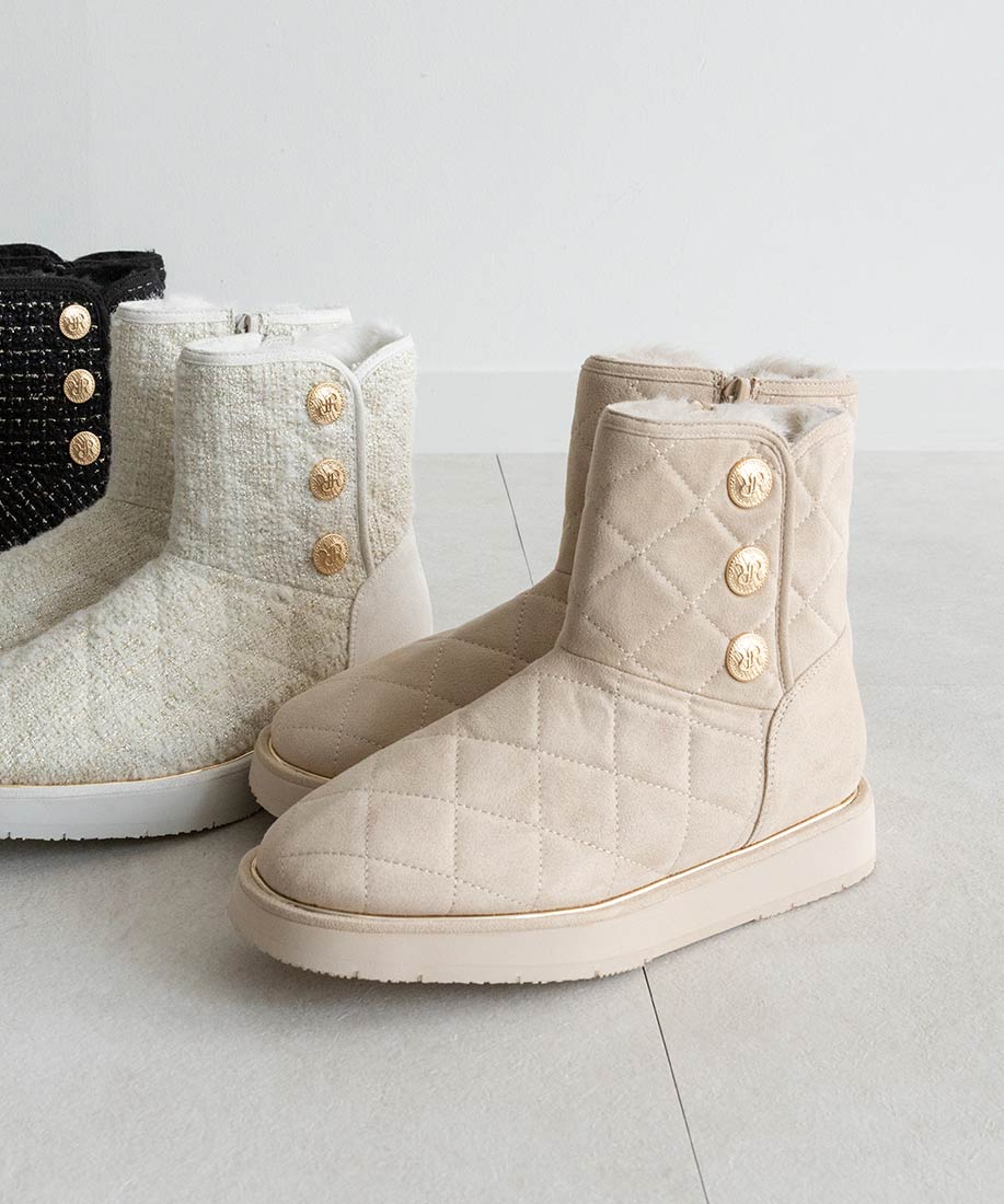 アイボリー・ブラック⇒ ツイード生地、フェイクファーベージュ⇒スエード生地、フェイクファー