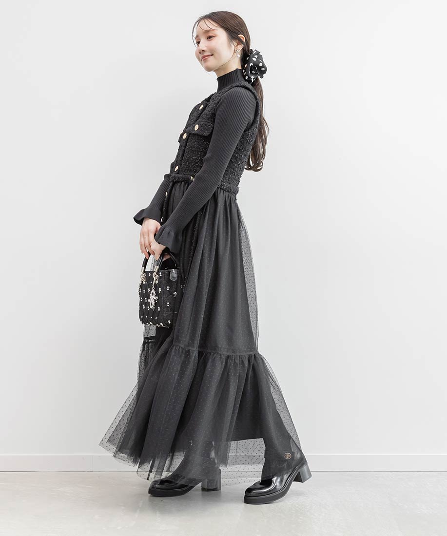 ・ニットソックスを重ねたような異素材合わせのレイヤードデザイン
