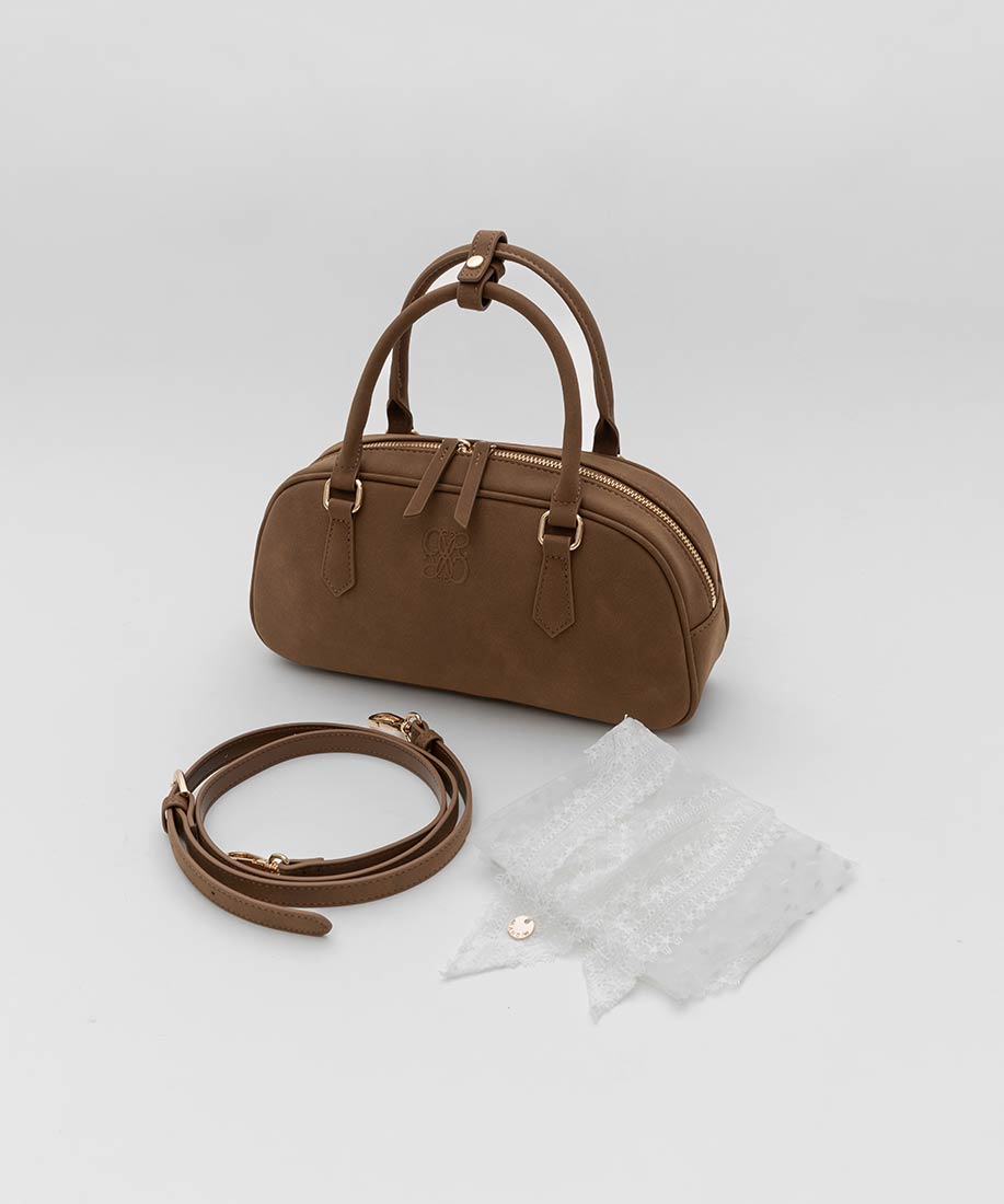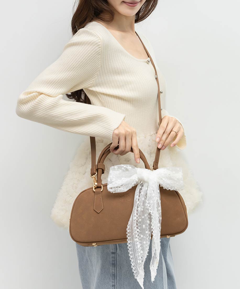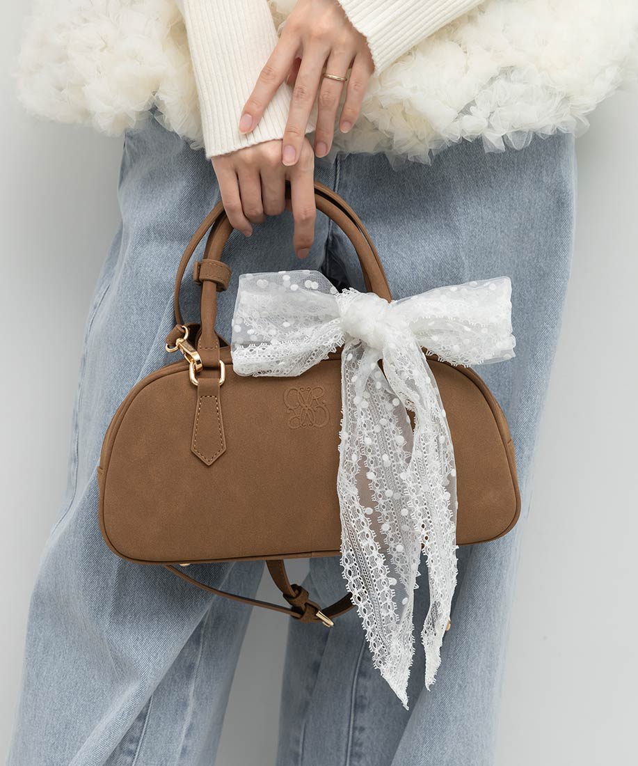 アイボリー・ブラック⇒合成皮革(スムース)、生地ブラウン⇒ヌバック生地、レース生地