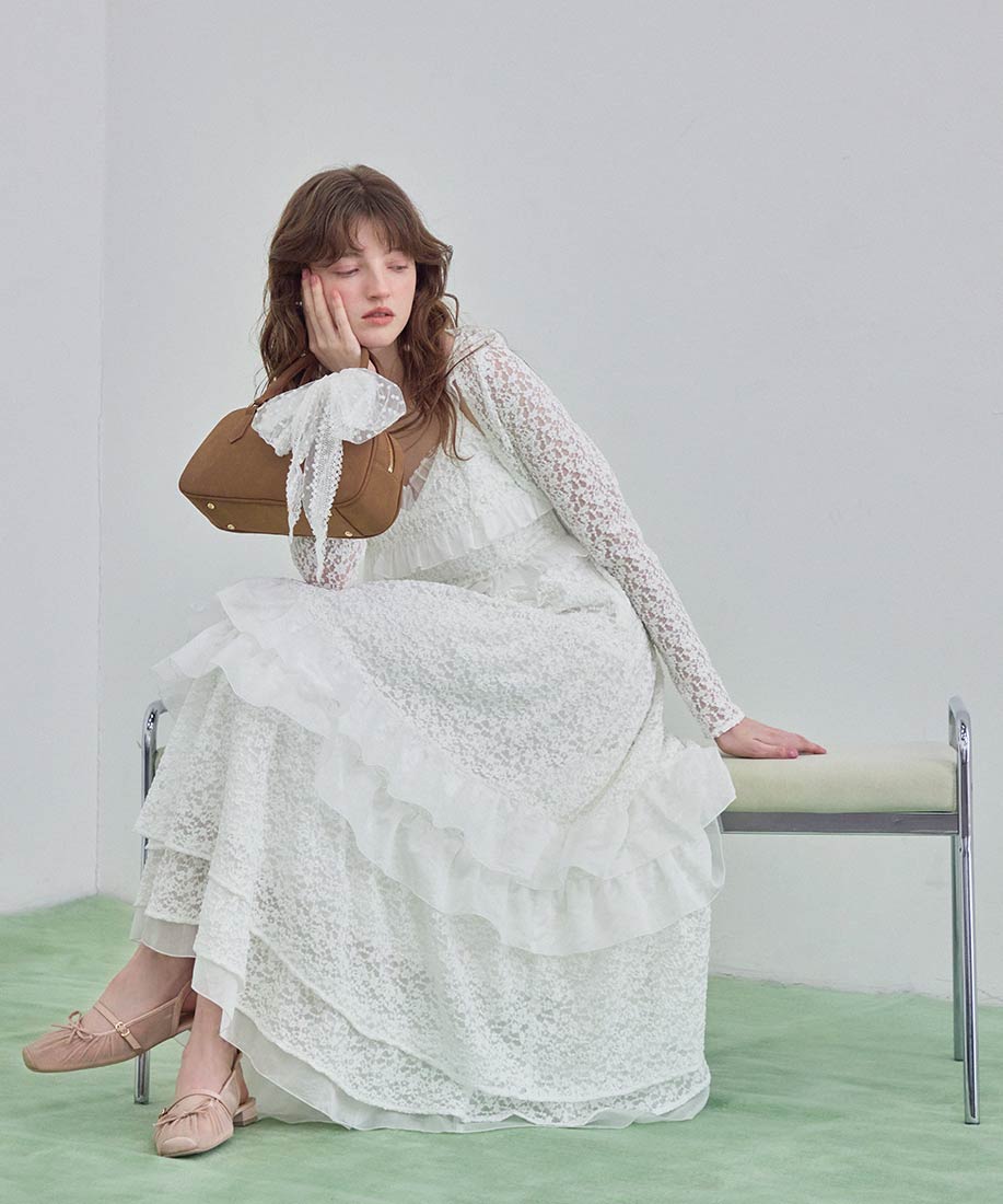 ヴィンテージライクなカットレースの構築的なフリル使いが印象的なキャミワンピース×ボレロセット。