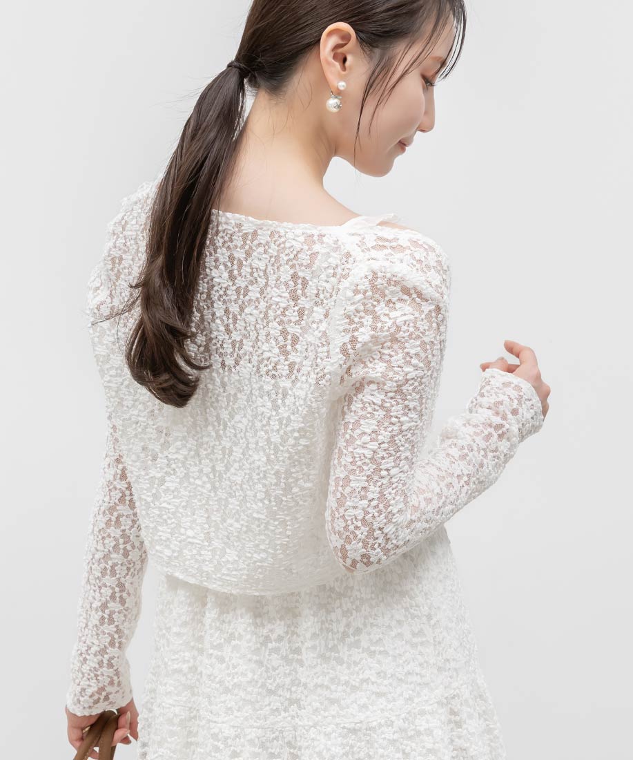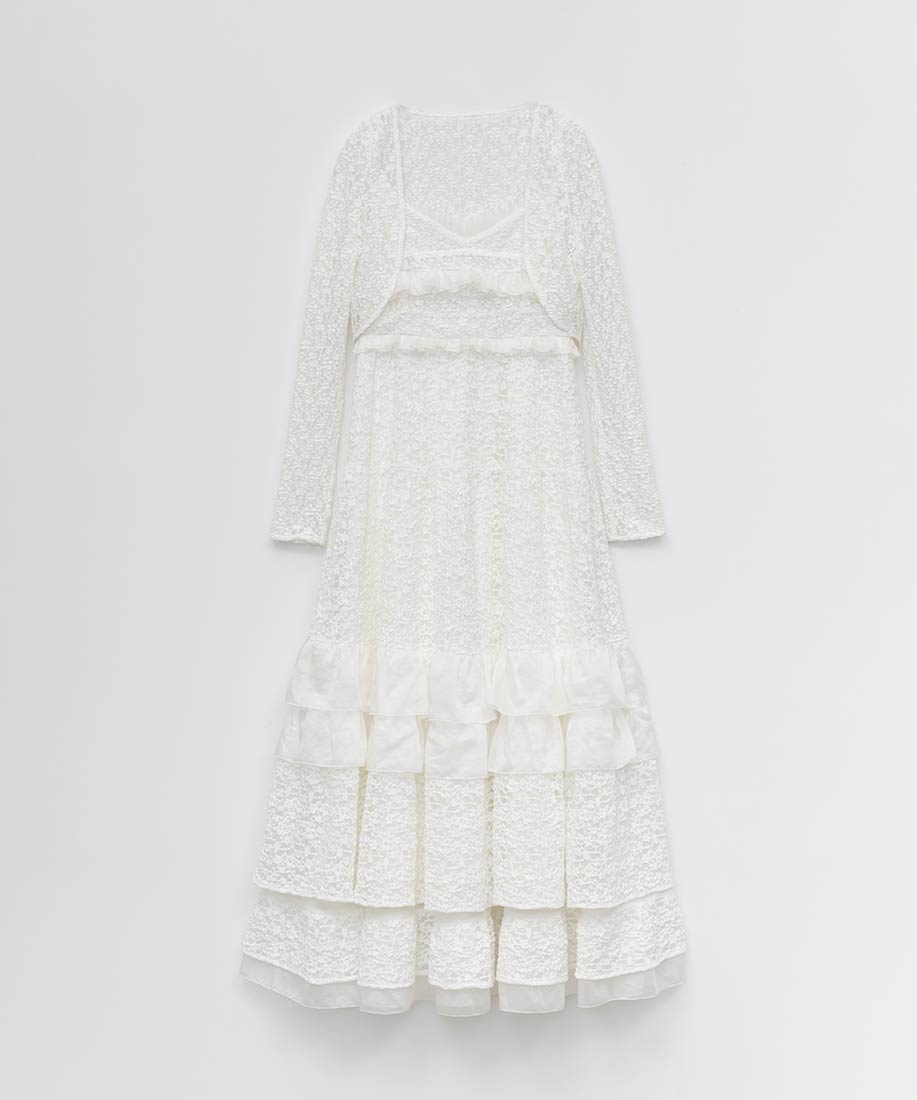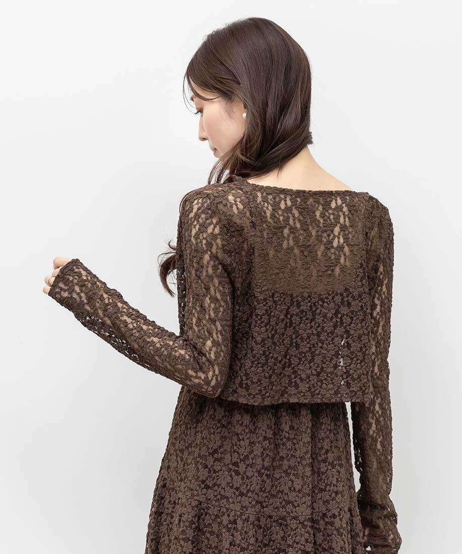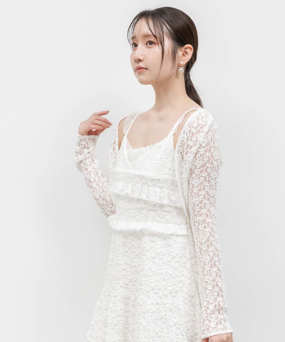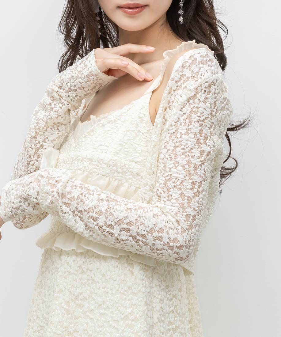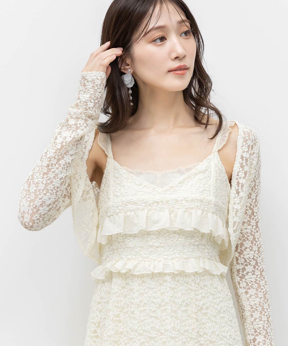 ボレロ⇒ポリエステル90%、ポリウレタン10%ワンピース⇒(表地)ポリエステル90%、ポリウレタン10%(別布)指定外繊維(リヨセル)90%、ポリエステル10%(裏地)ポリエステル95%、ポリウレタン5%