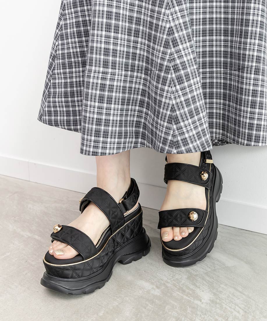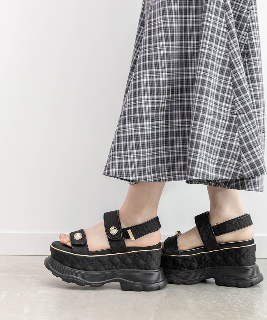 パールパーツキルティングスポーツサンダル