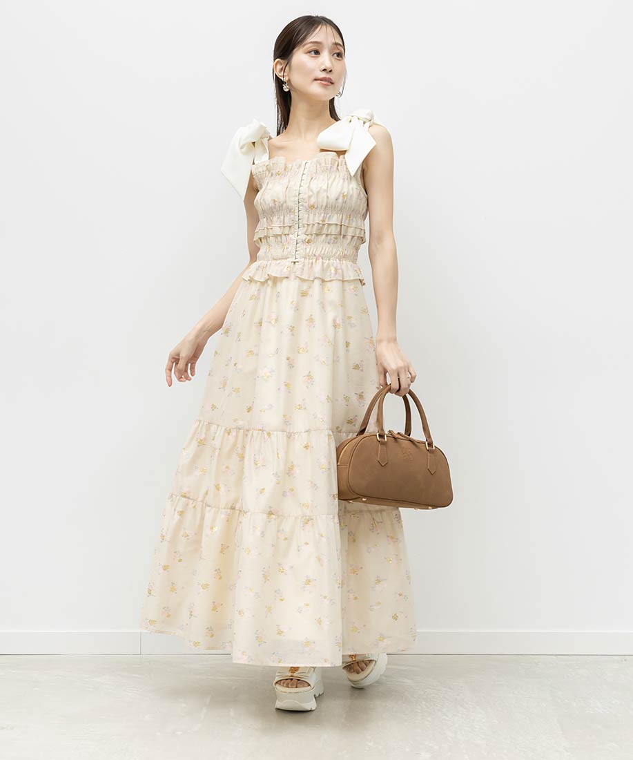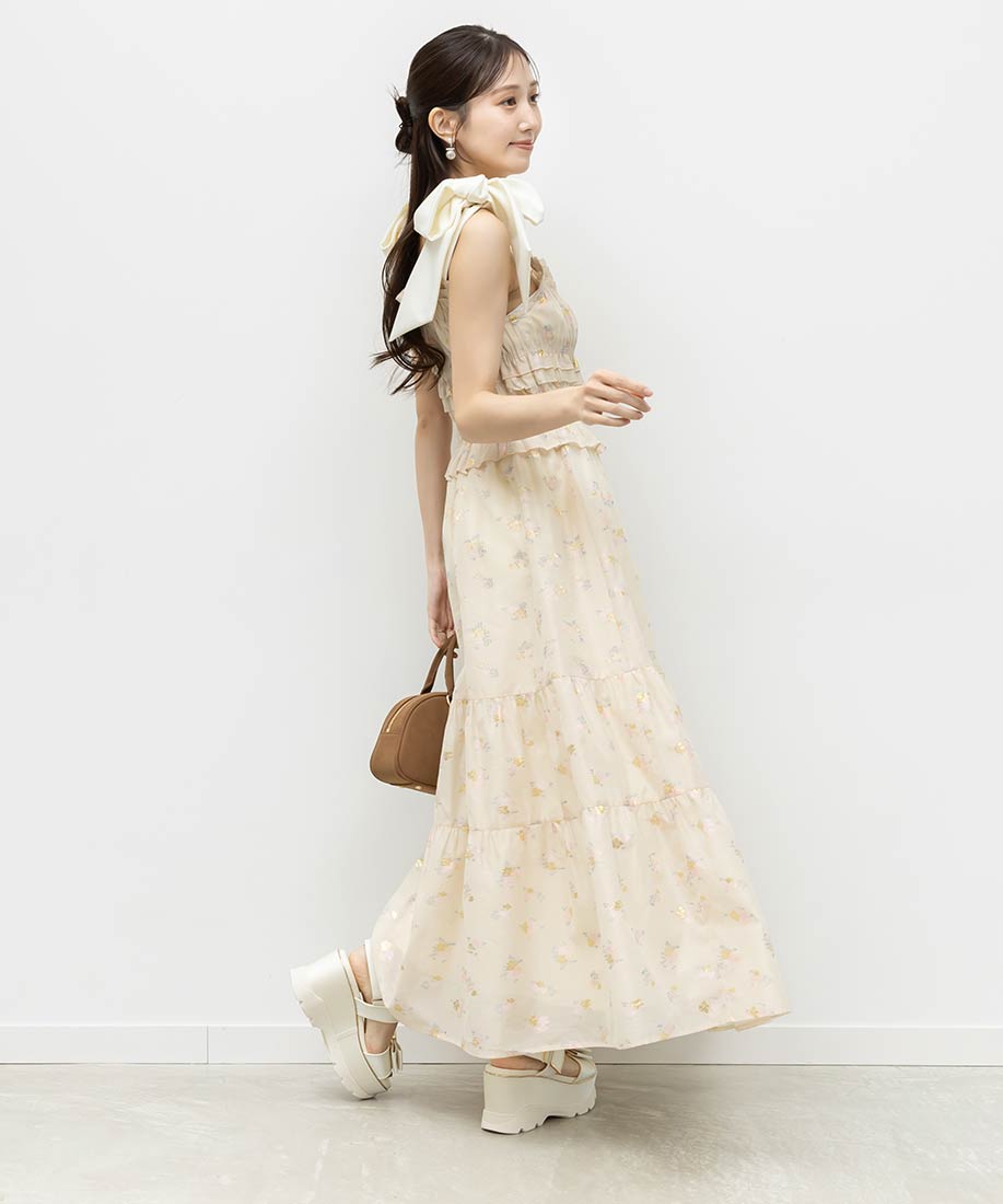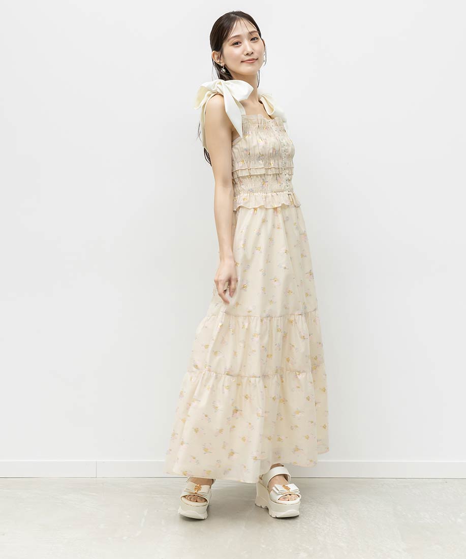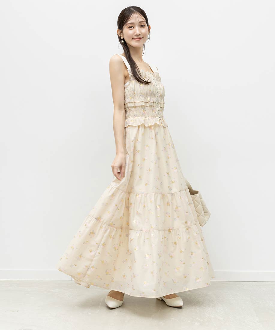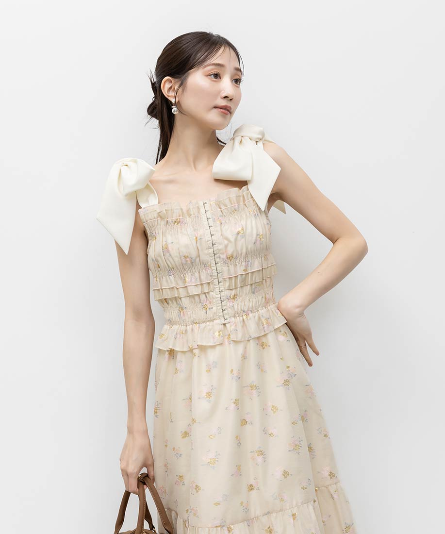 ブラック・ホワイト⇒(表地)ポリエステル100%(別布)ポリエステル75%・レーヨン20%・ポリウレタン5%(裏地)身頃⇒ポリエステル100%、スカート⇒ポリエステル95%・ポリウレタン5%ピンク⇒(表地)レーヨン50%・ナイロン26%・ポリエステル24%(スリット糸使用)(別布)レーヨン70%・ナイロン30%(裏地)身頃⇒ポリエステル100%、スカート⇒ポリエステル95%・ポリウレタン5%ベージュ⇒(表地)レーヨン60%・ポリエステル25%・ナイロン15%(スリット糸使用)(別布)ポリエステル78%・レーヨン16%・ポリウレタン6%(裏地)ポリエステル95%、ポリウレタン5%