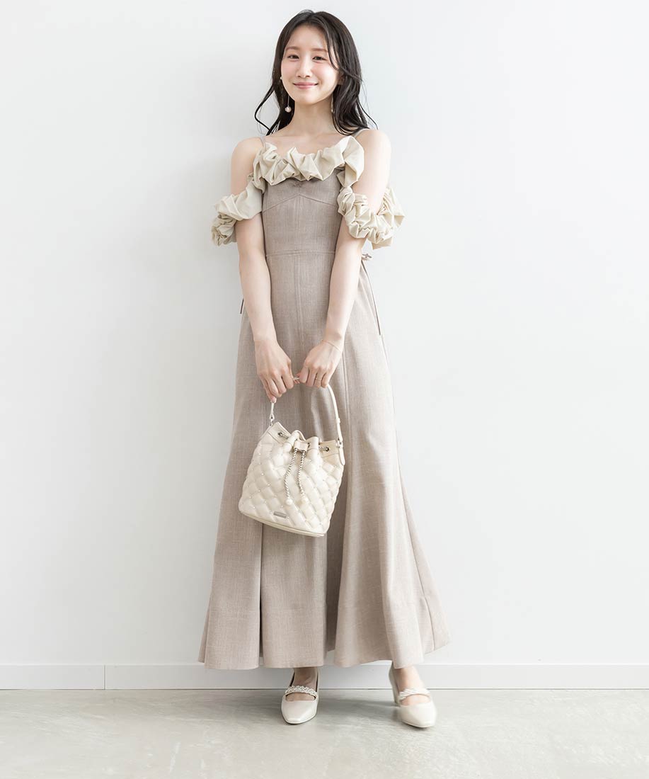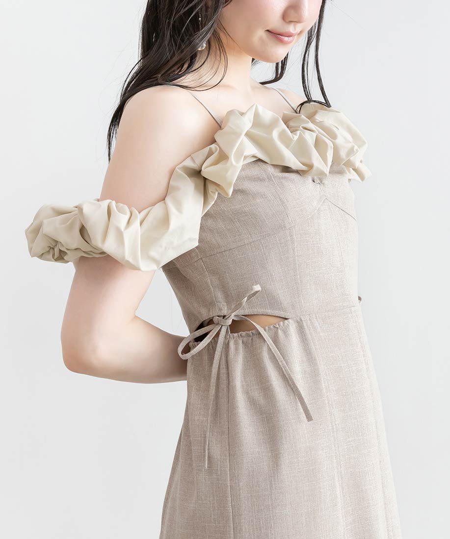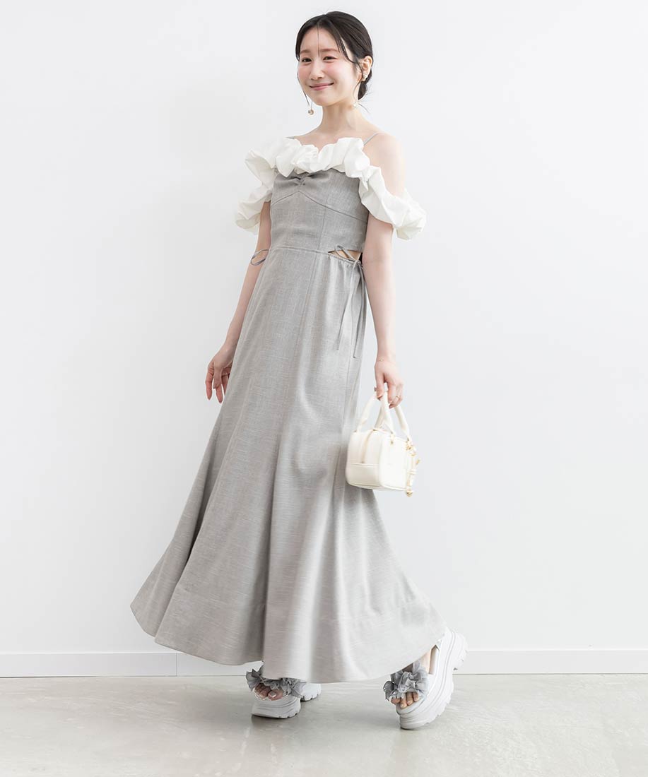 ・フリル部分にはハリ感のあるタフタ素材を使用し、立体感を演出