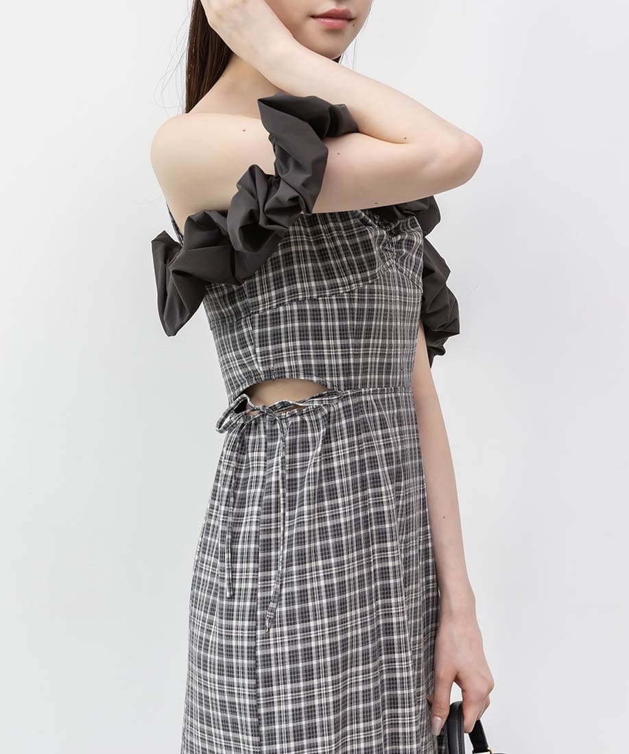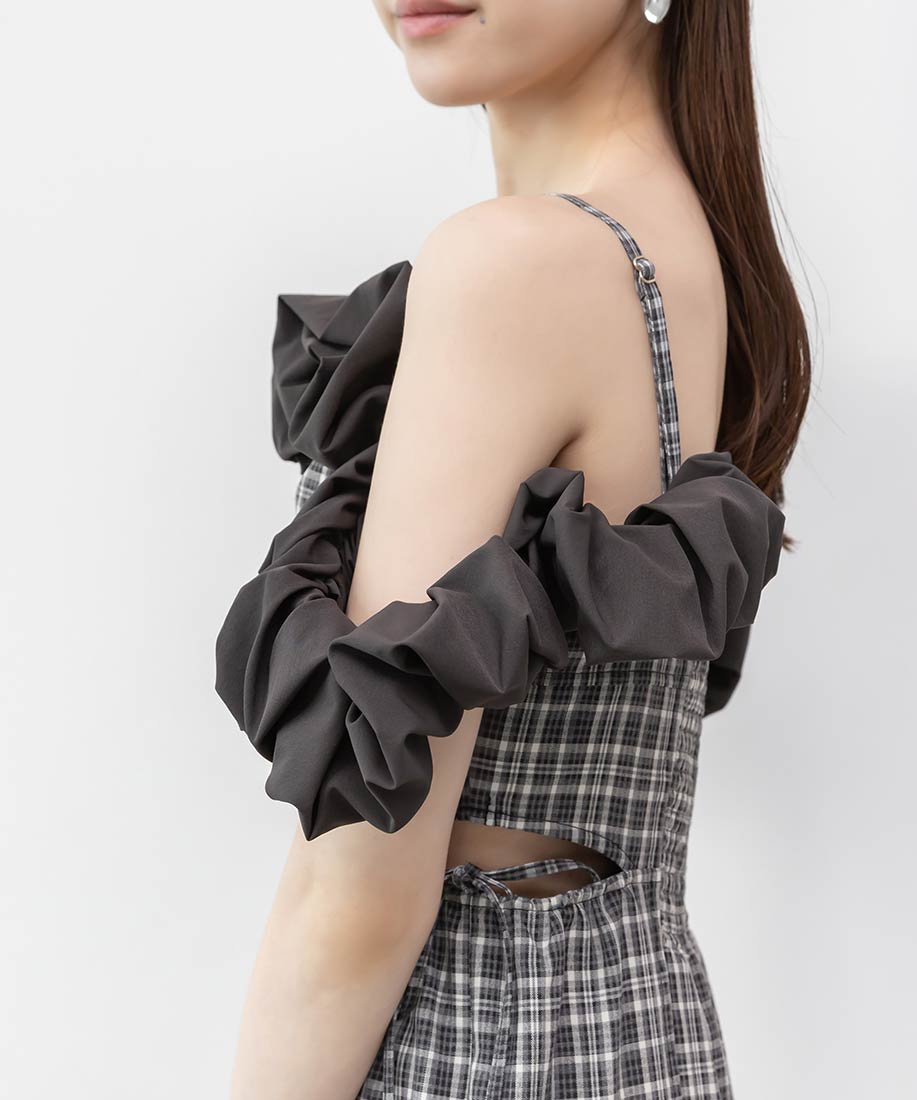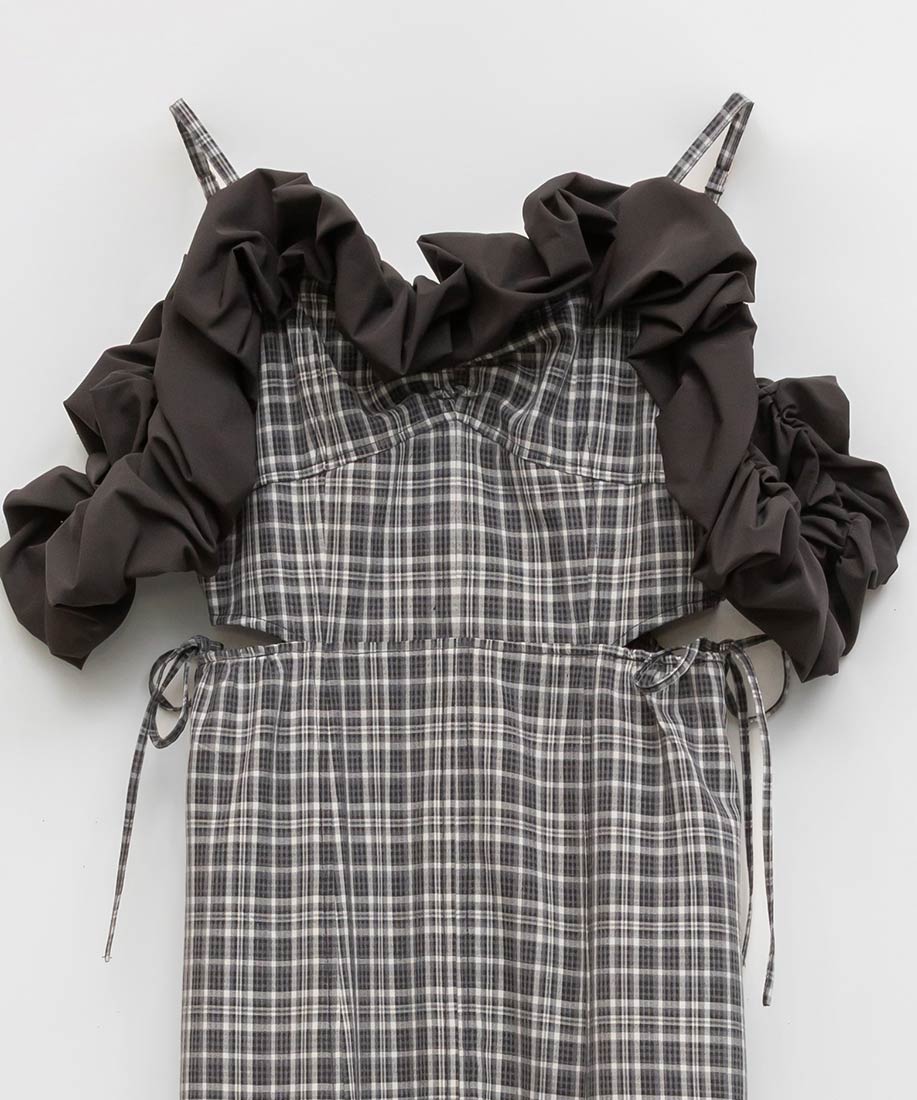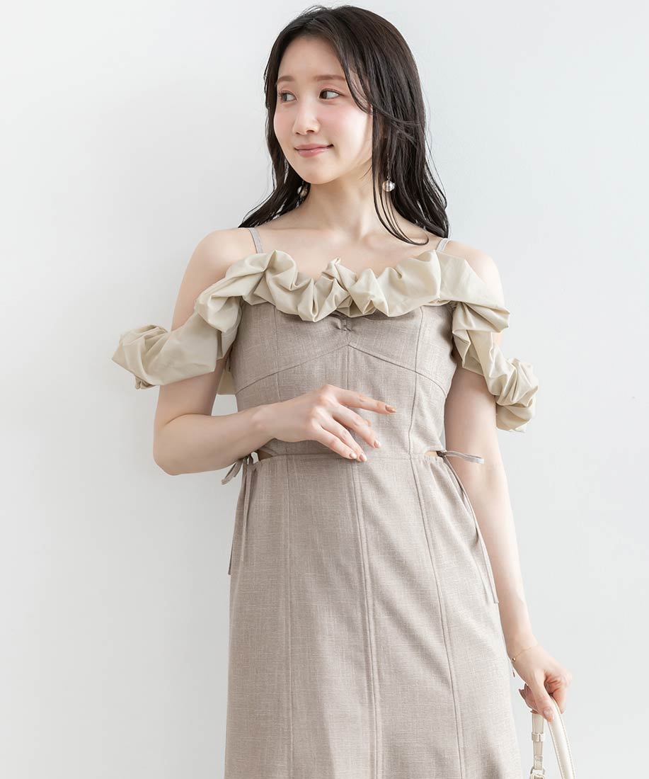 ・フリル部分にはハリ感のあるタフタ素材を使用し、立体感を演出