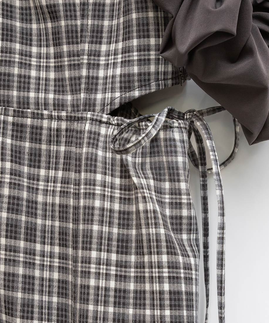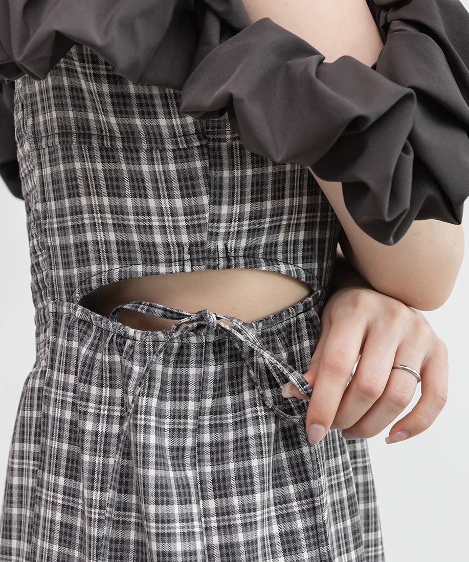 ・サイドのカッティングは紐で開閉が可能なので、お好みに合わせて着用可能