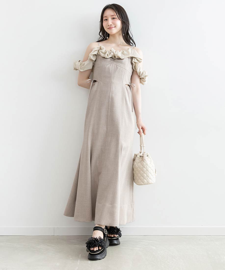 異素材使いとディテールにこだわった、大人フェミニンなキャミワンピース。