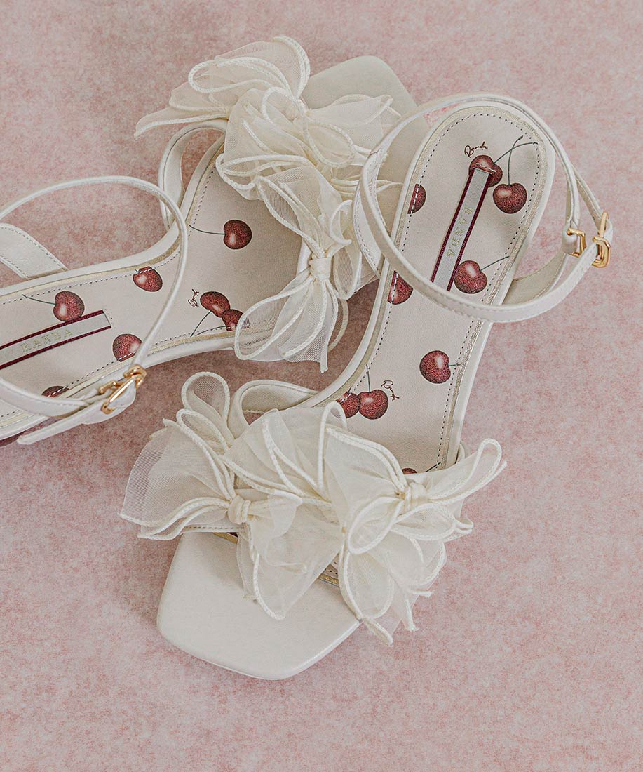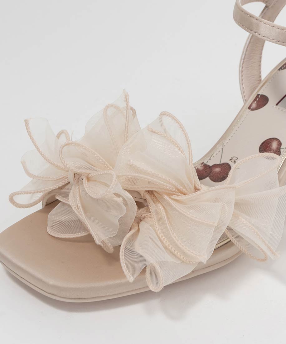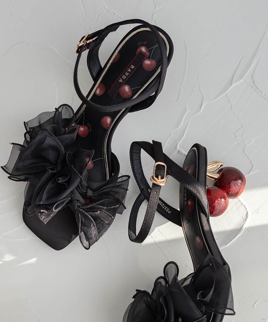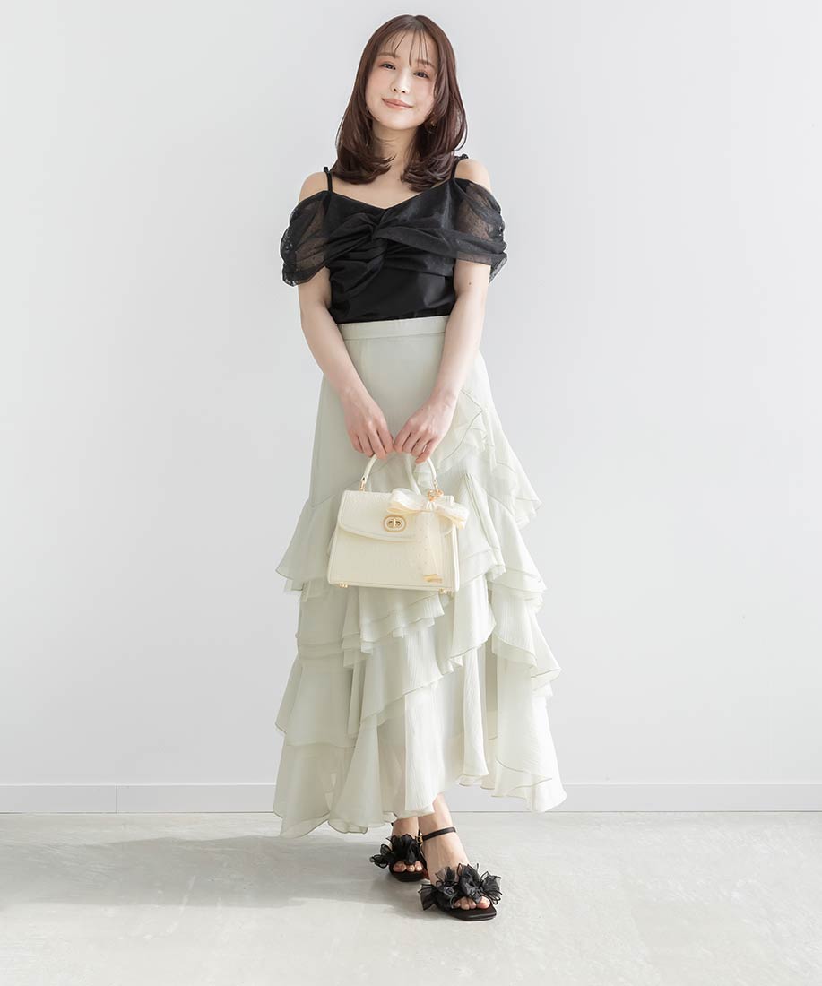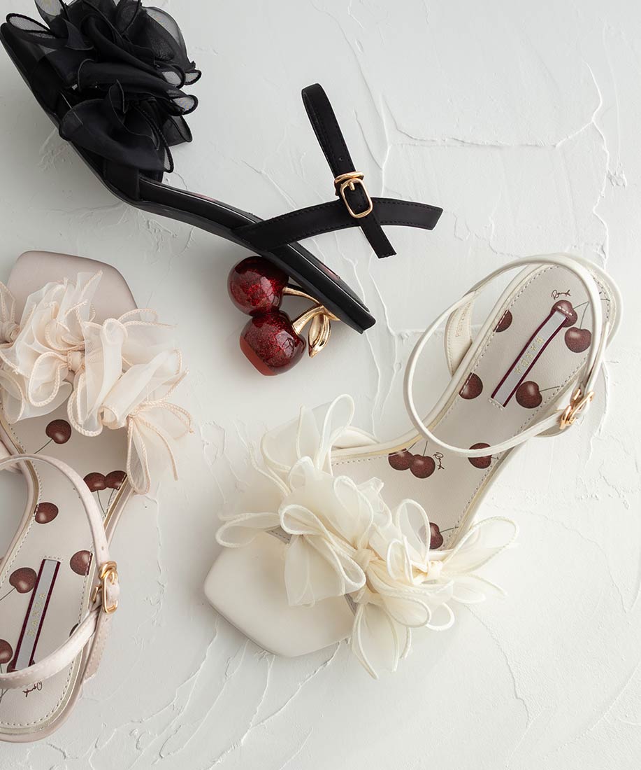 アイボリー⇒シフォン生地、合成皮革(スムース)ブラック・ピンク⇒シフォン生地、サテン生地