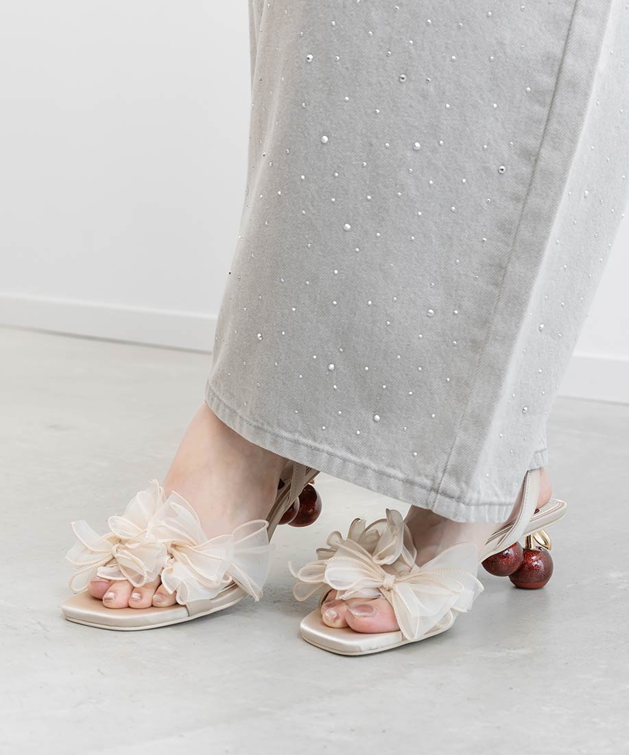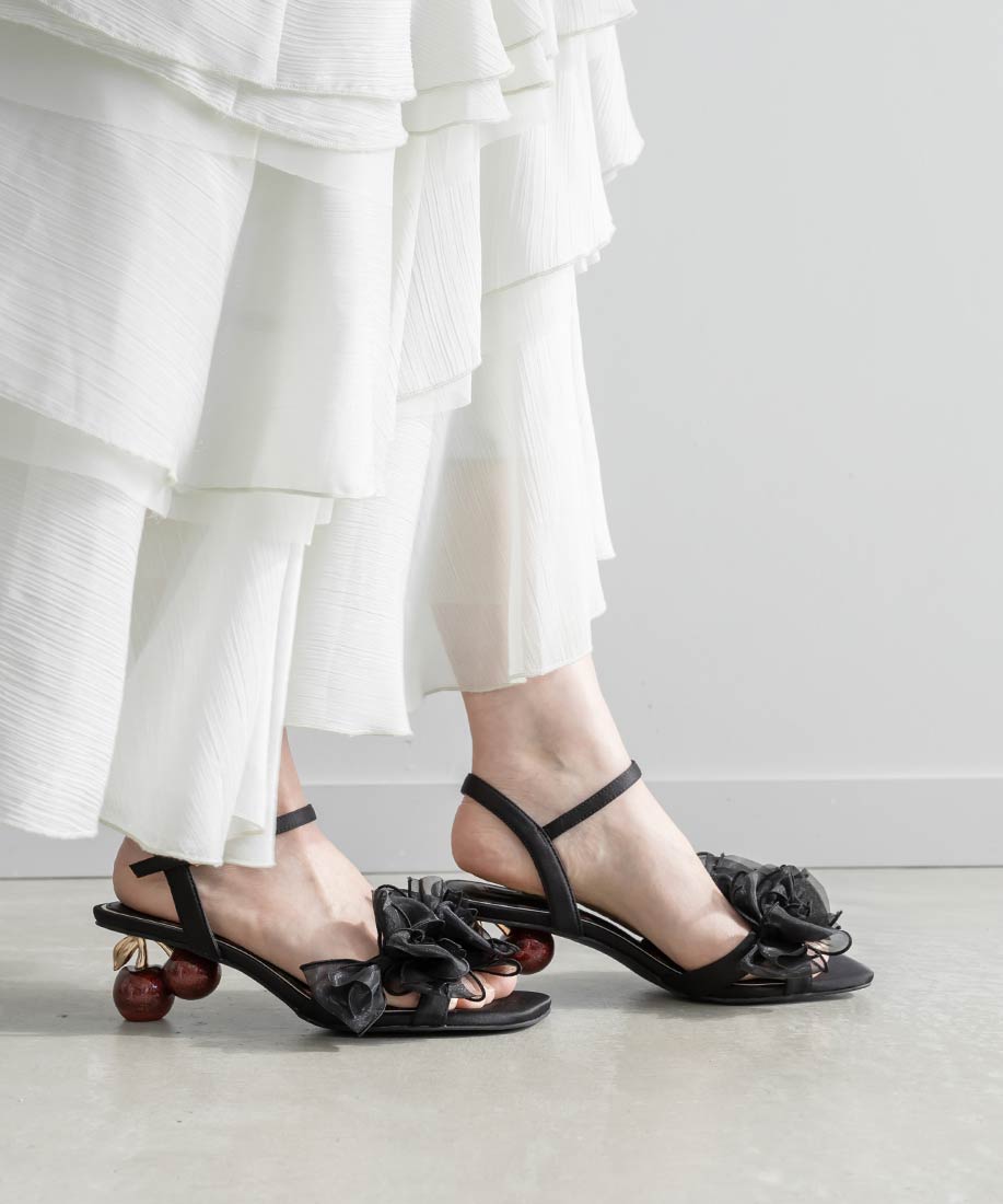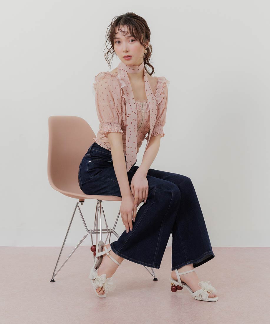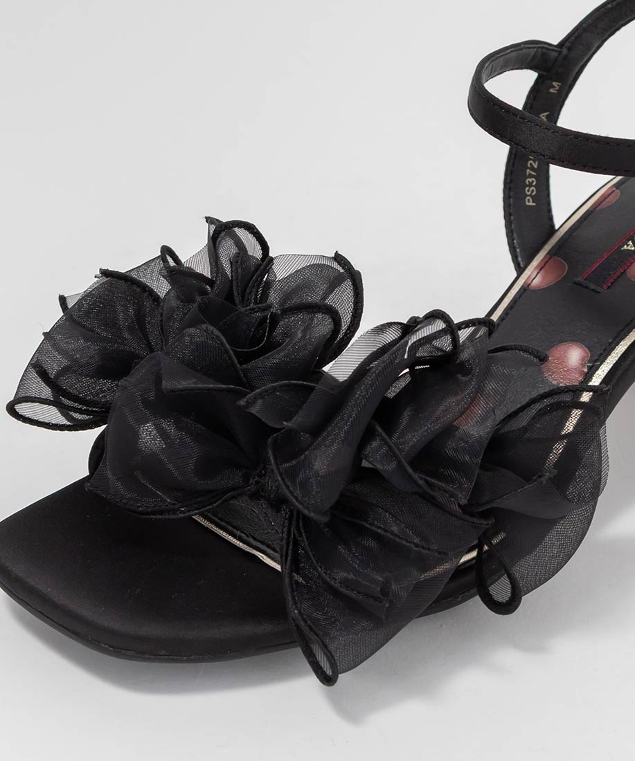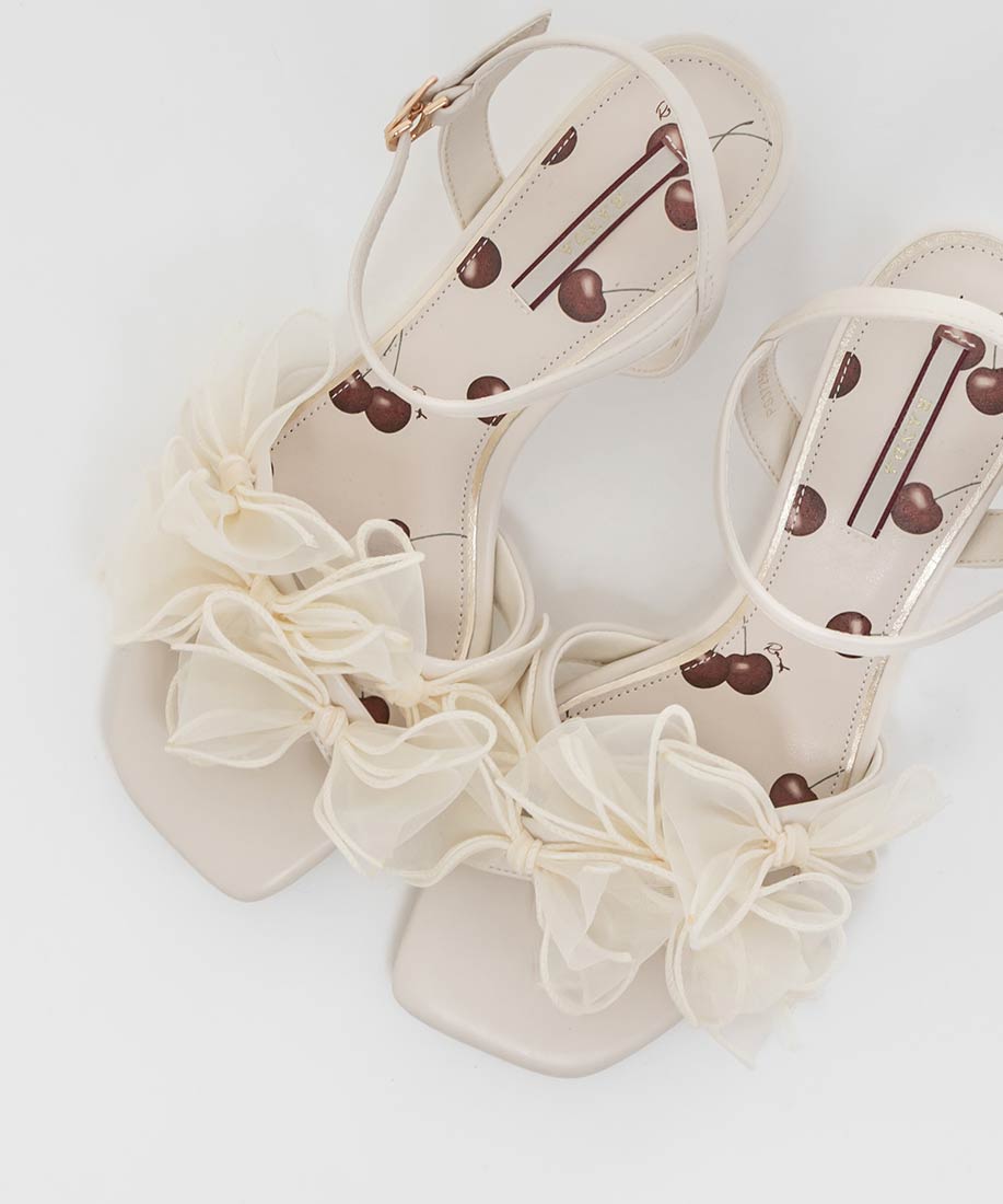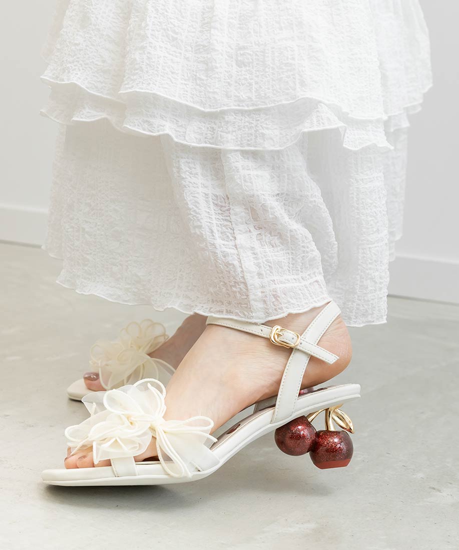 アイボリー⇒シフォン生地、合成皮革(スムース)ブラック・ピンク⇒シフォン生地、サテン生地