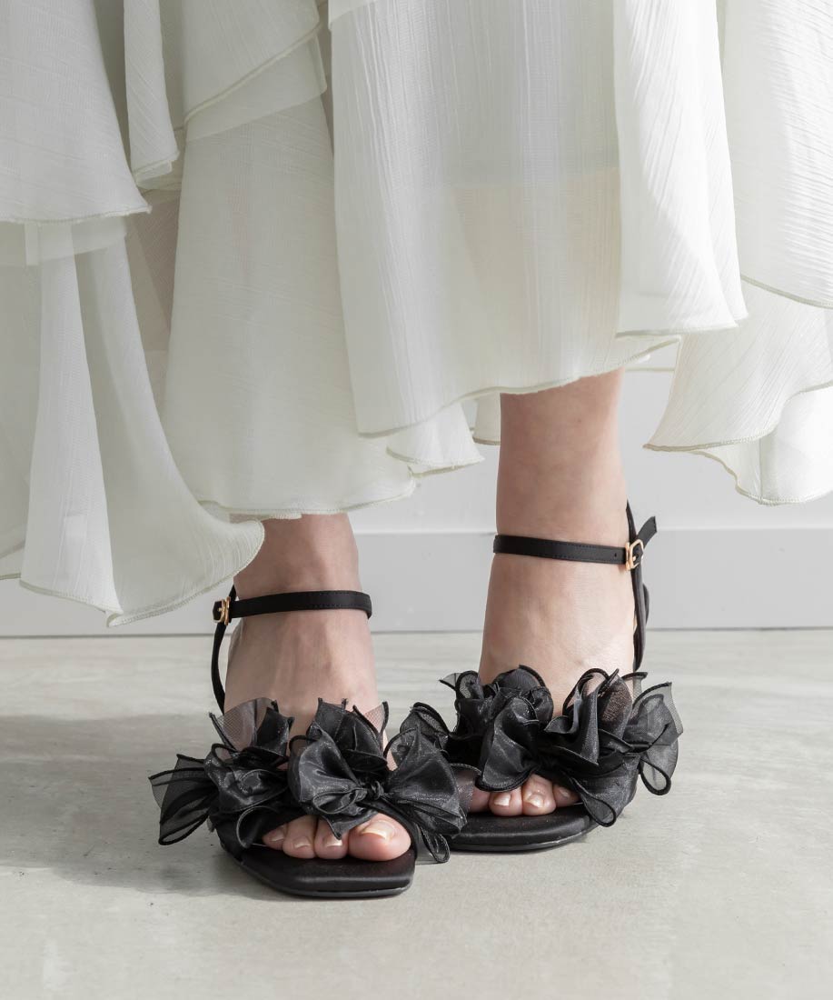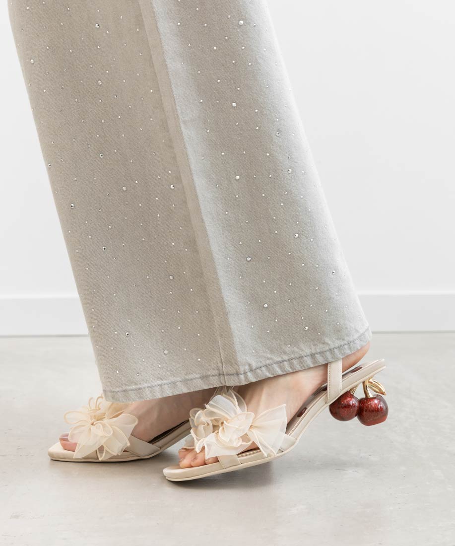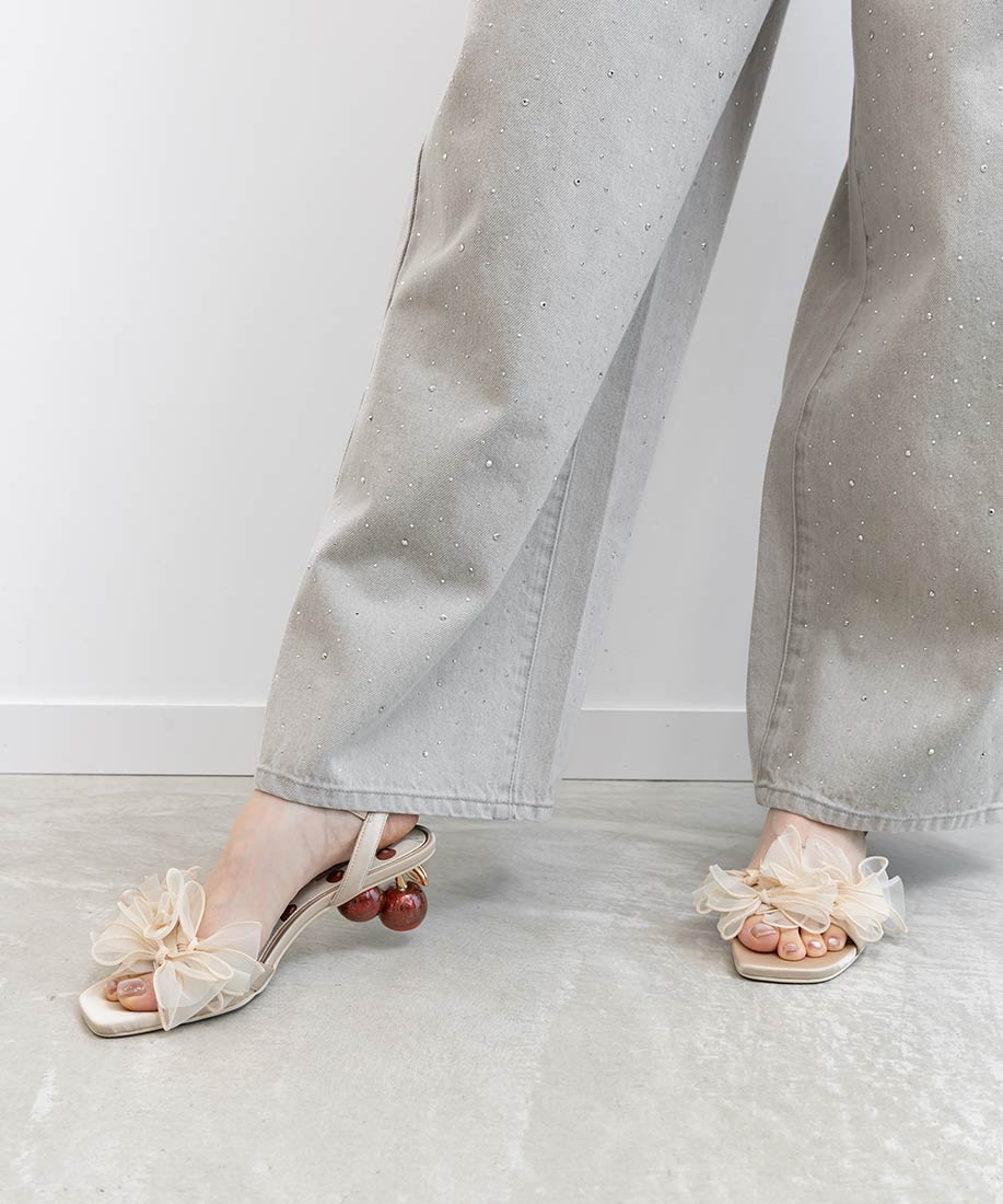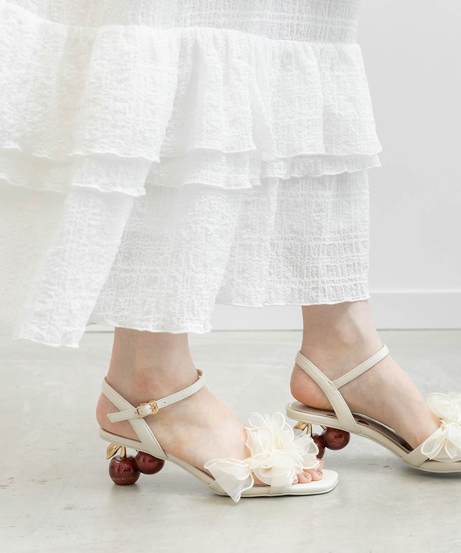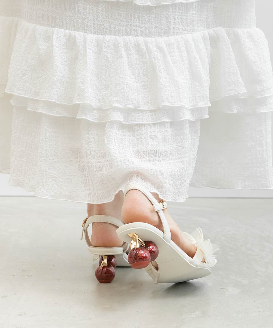 アイボリー⇒シフォン生地、合成皮革(スムース)ブラック・ピンク⇒シフォン生地、サテン生地