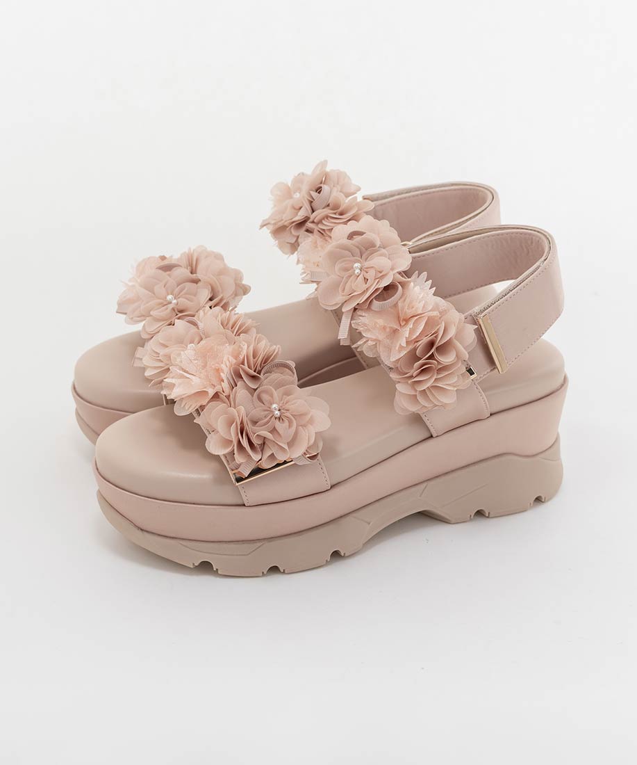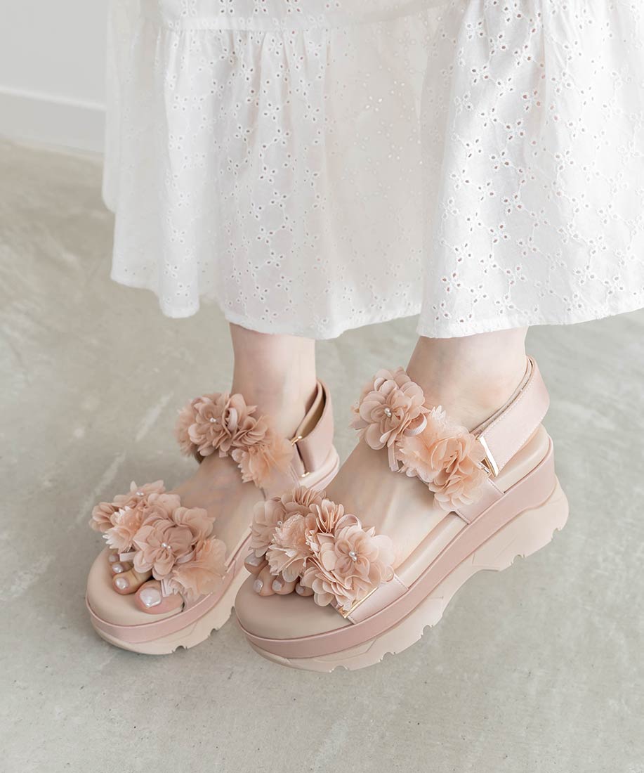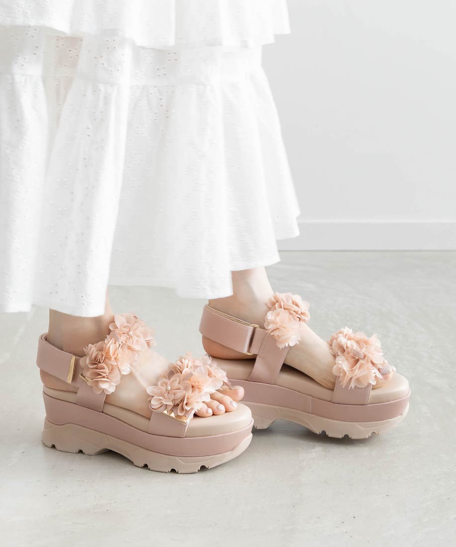 ふんわりとしたフラワーモチーフが気分高まるスポーツサンダル。