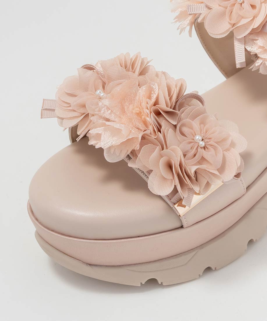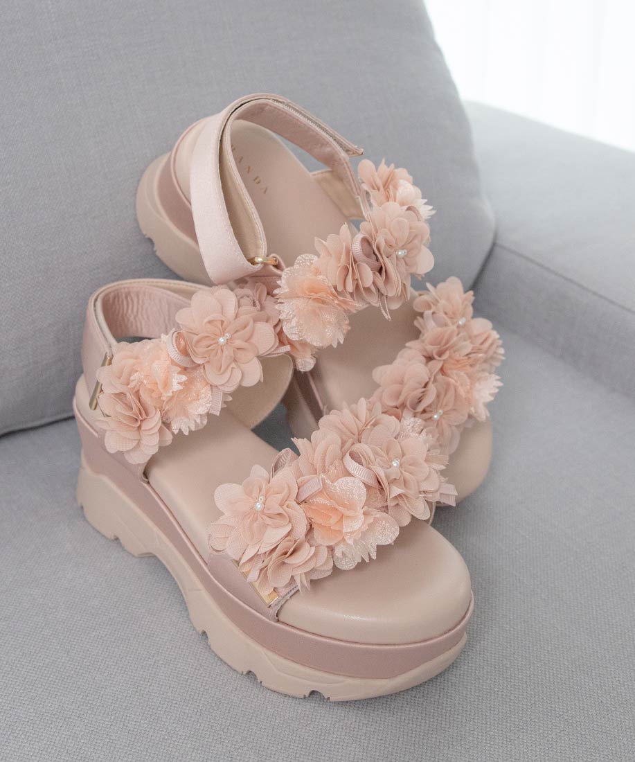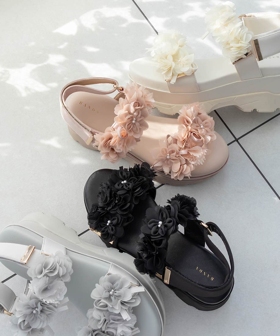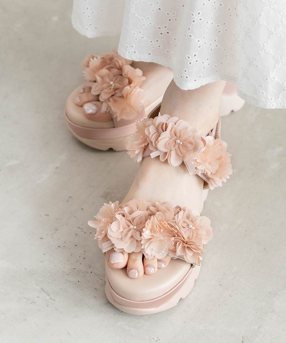 ふんわりとしたフラワーモチーフが気分高まるスポーツサンダル。