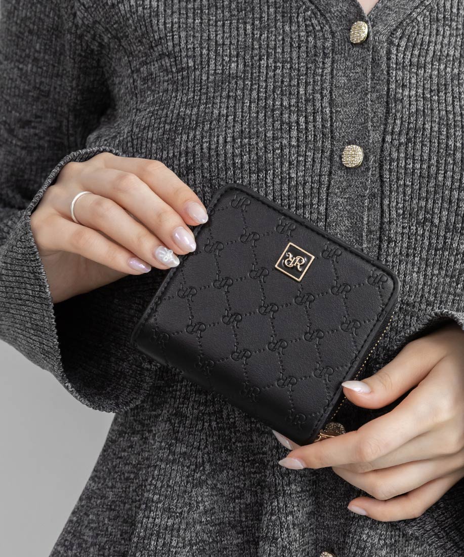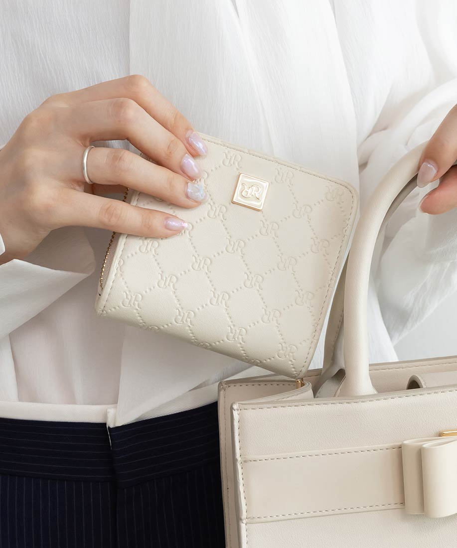 モノグラムの型押しデザインが手元を上品に演出してくれるウォレット。
