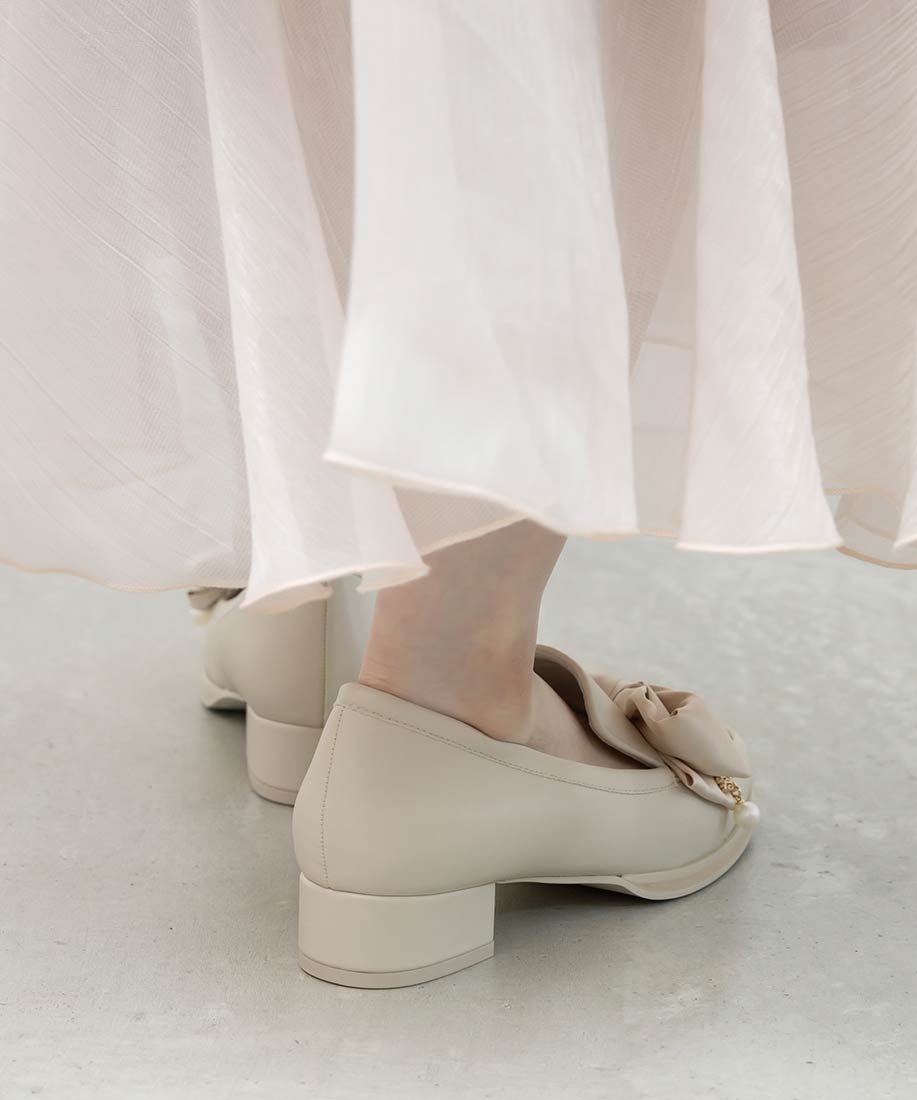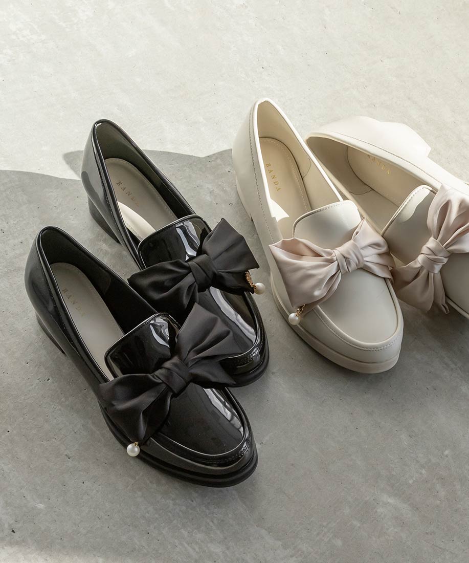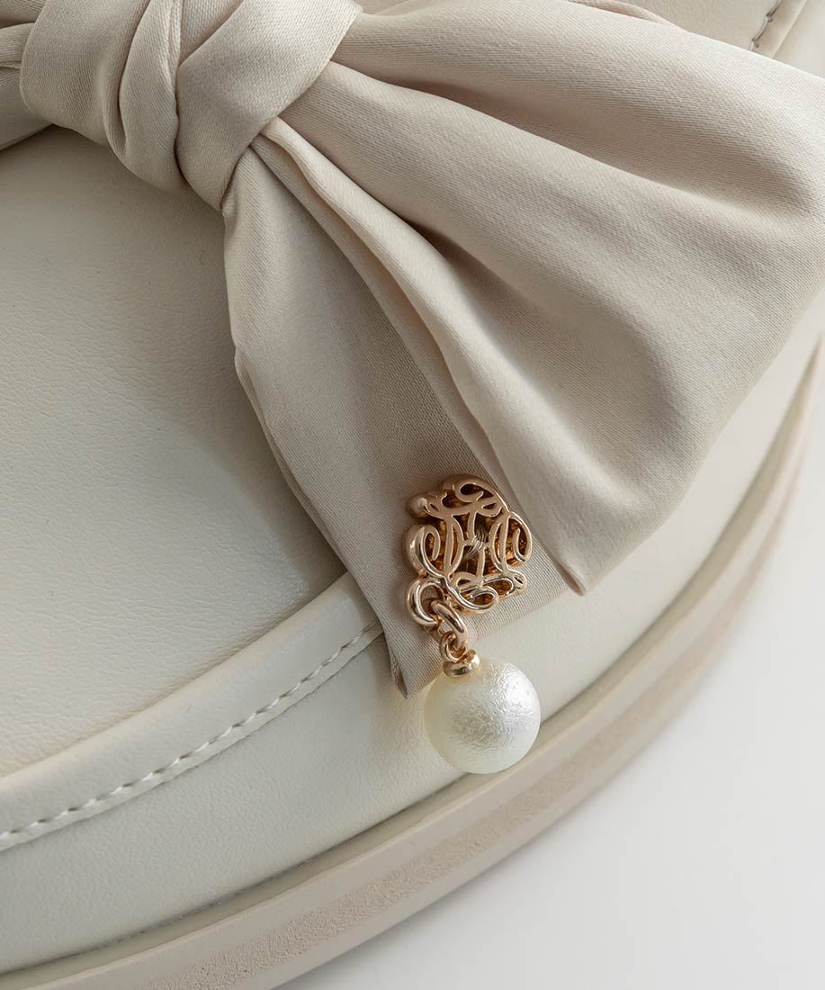 アイボリー⇒合成皮革(スムース)、サテン生地ブラック⇒合成皮革(エナメル)、サテン生地