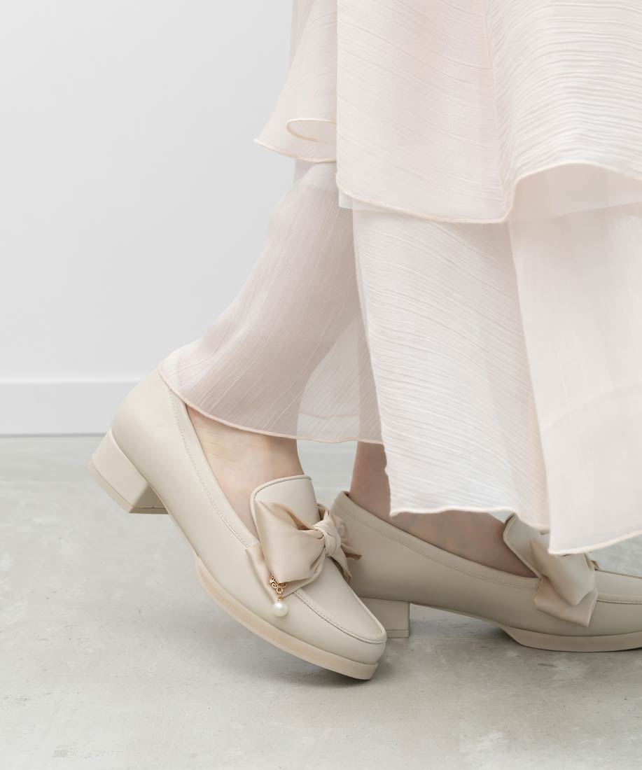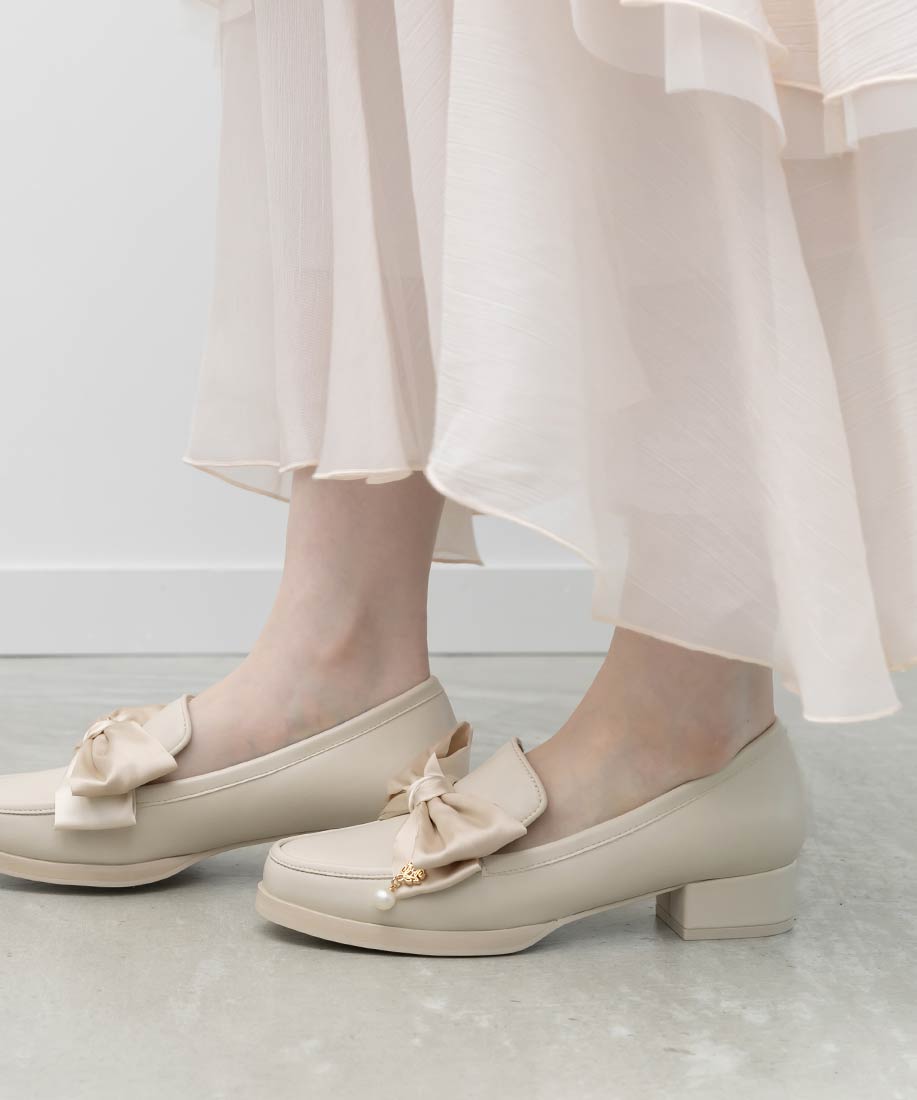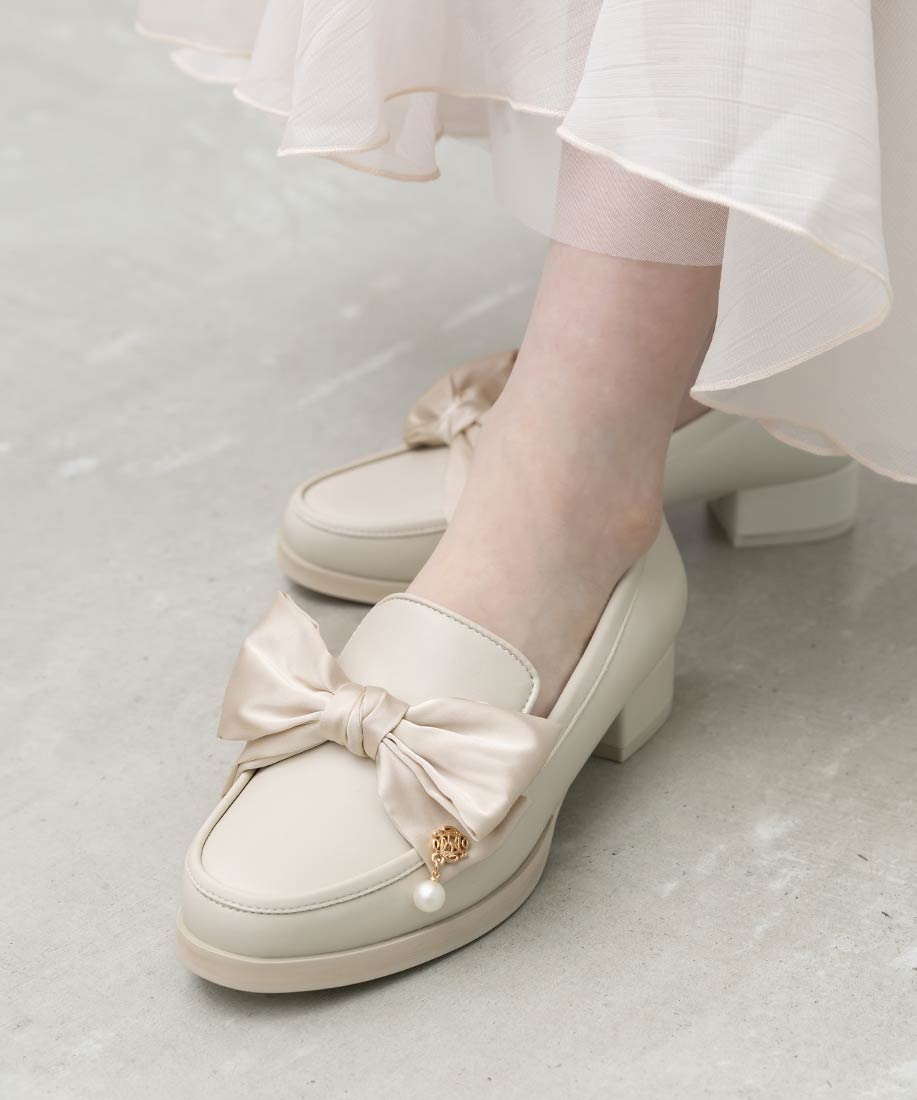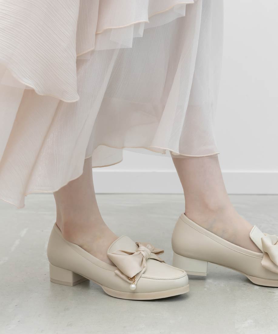 アイボリー⇒合成皮革(スムース)、サテン生地ブラック⇒合成皮革(エナメル)、サテン生地