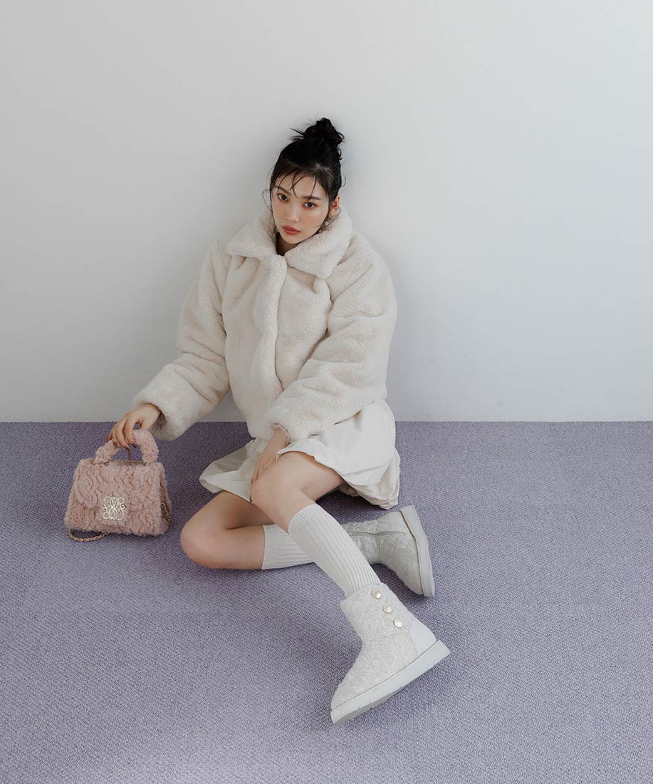 柔らかなフェイクファーで高級感ある雰囲気を演出し、シーズンムードを高めてくれる一着です。