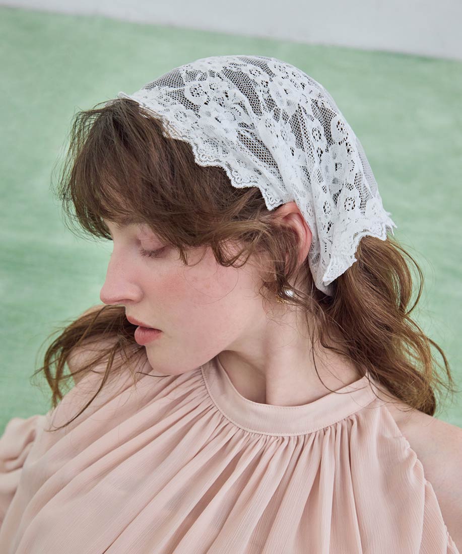 シンプルなニットやカットソーと合わせれば、レーススカーフが程よいアクセントになり、こなれたカジュアルスタイルが完成します。