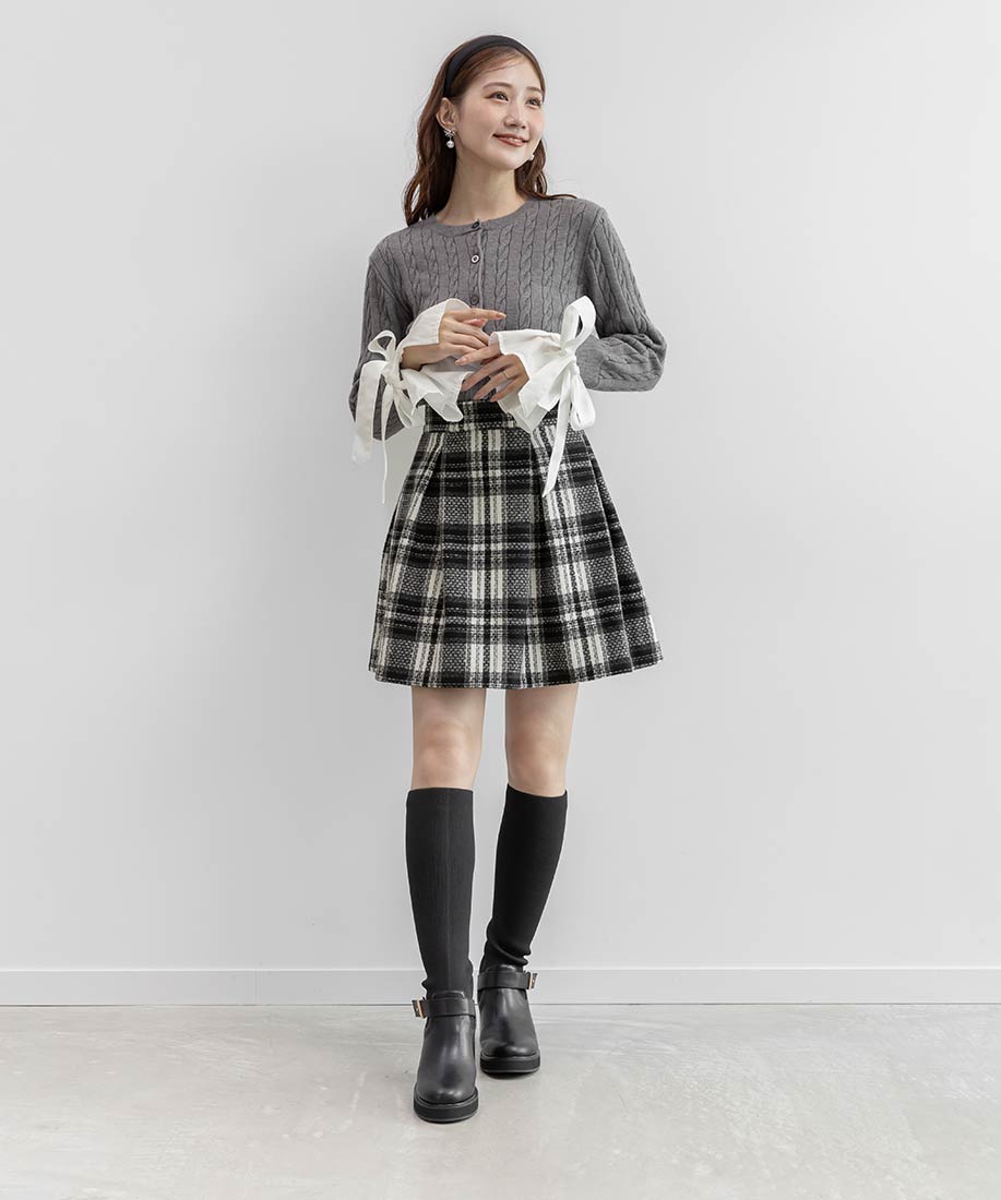チェック⇒(表地)ポリエステル100%(別布)ポリエステル80%、綿20%(裏地)ポリエステル100%グレー⇒(表地)ポリエステル70%、毛30%(別布)ポリエステル80%、綿20%(裏地)ポリエステル100%
