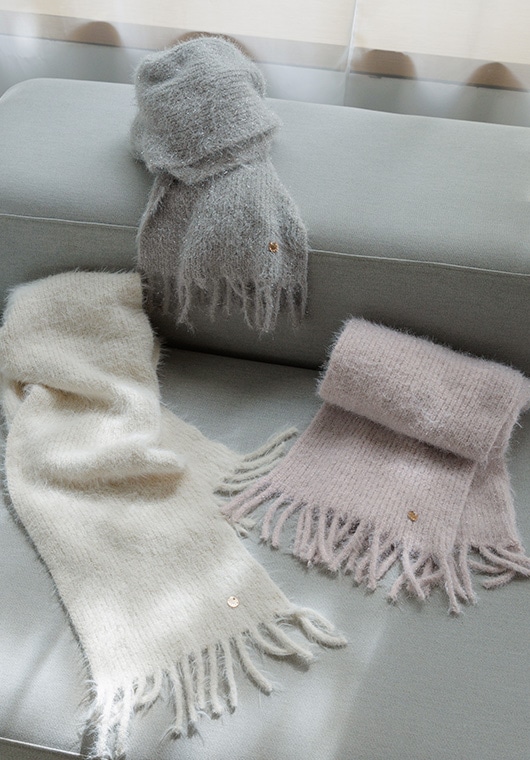 ふんわりとしたやわらかな肌ざわりが魅力のマフラーです。
