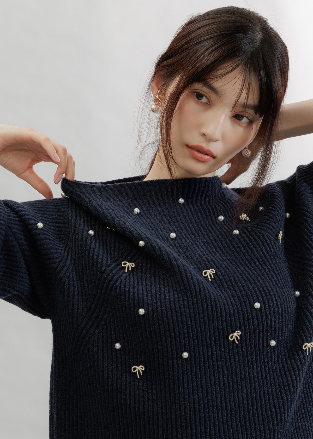 ざっくりとしたリブ編みの肉厚素材が身体のラインを拾わず、