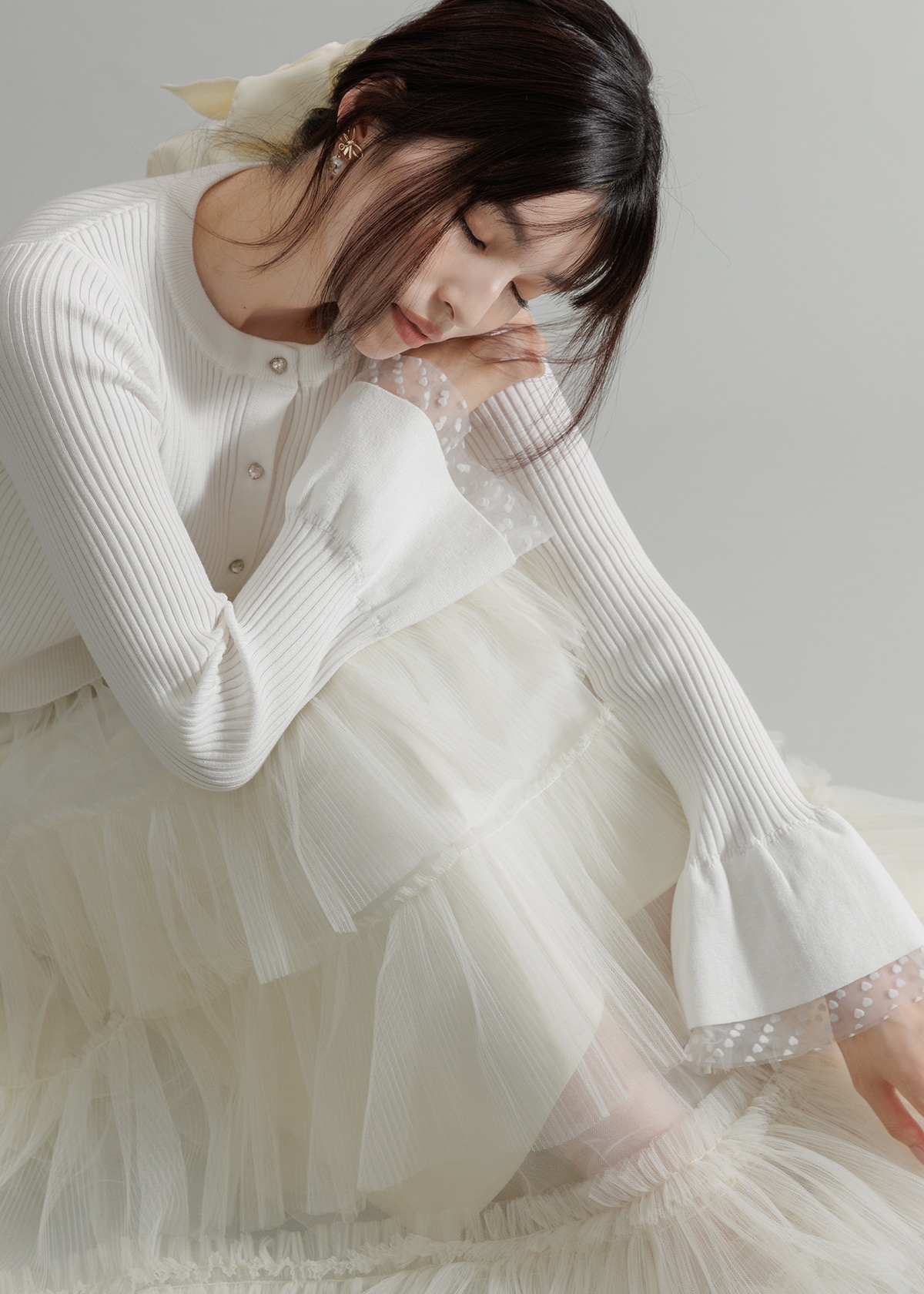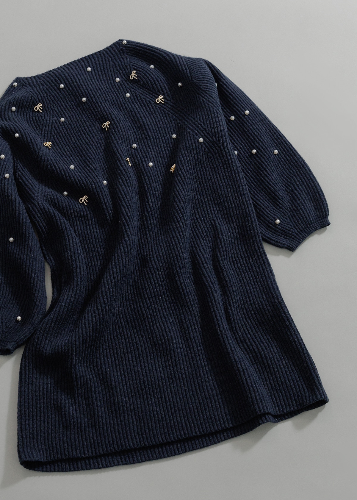 身体のラインに優しく寄り添うシルエットで、すっきりとした印象に。