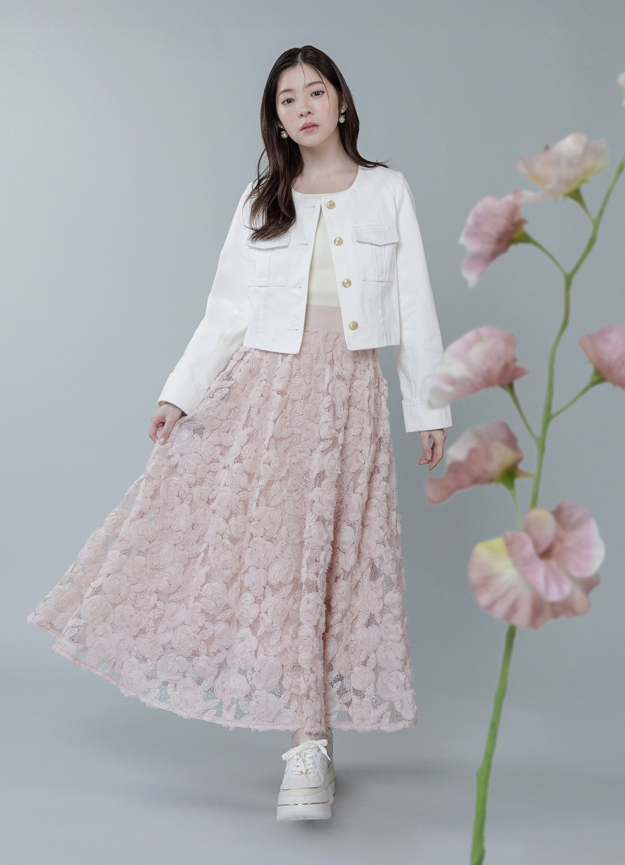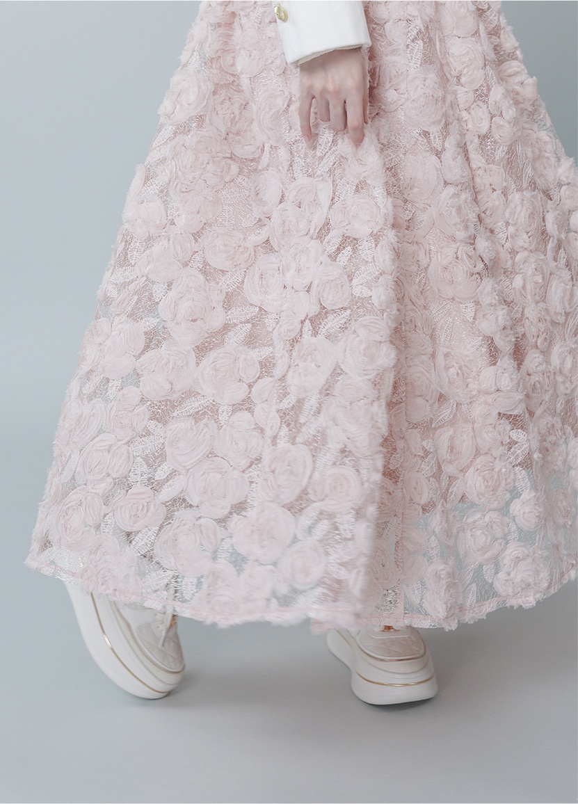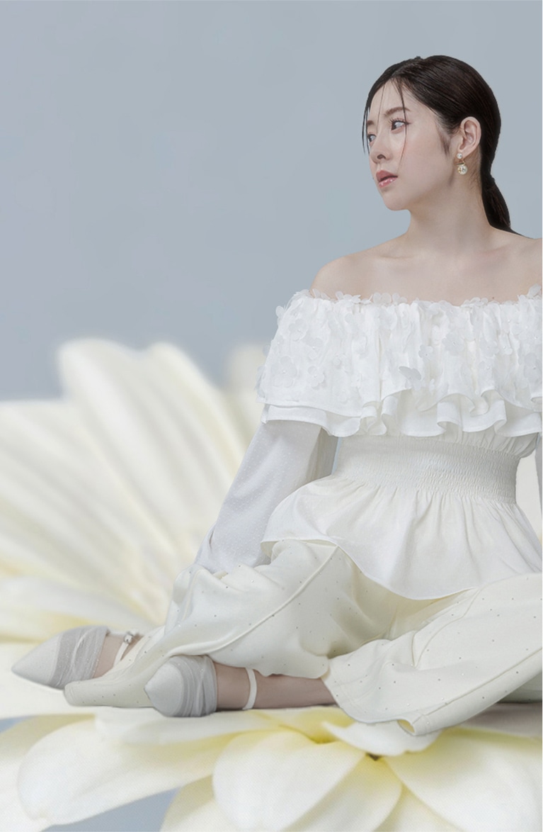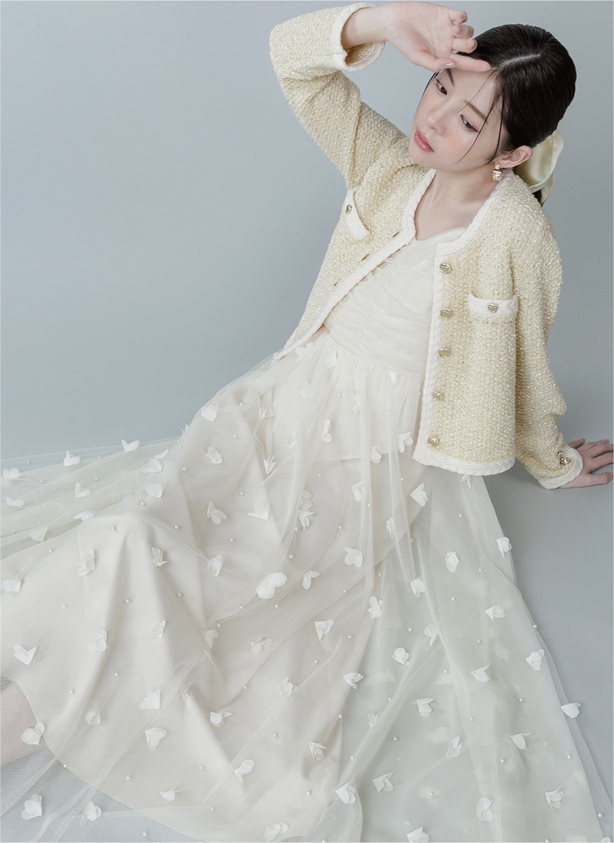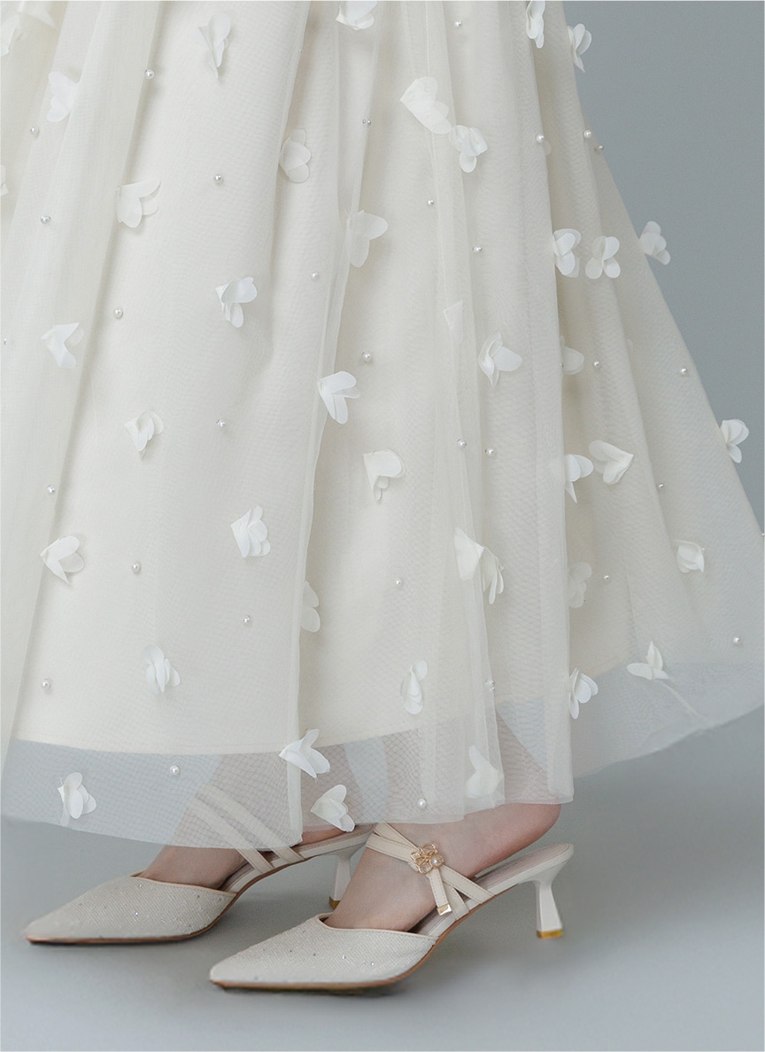 さりげないフラワーディテールが溶け合い