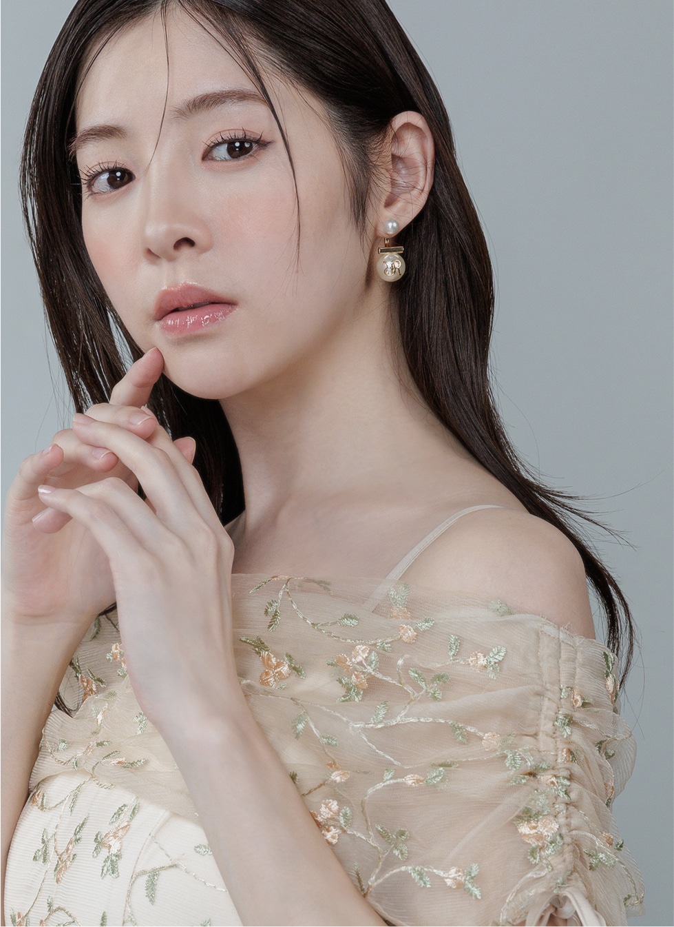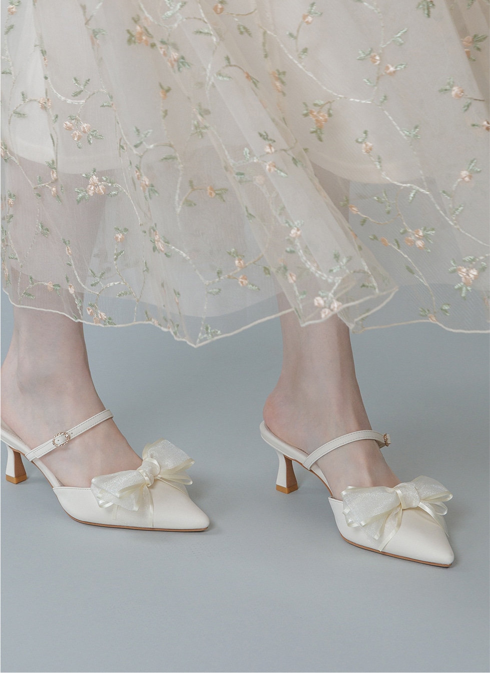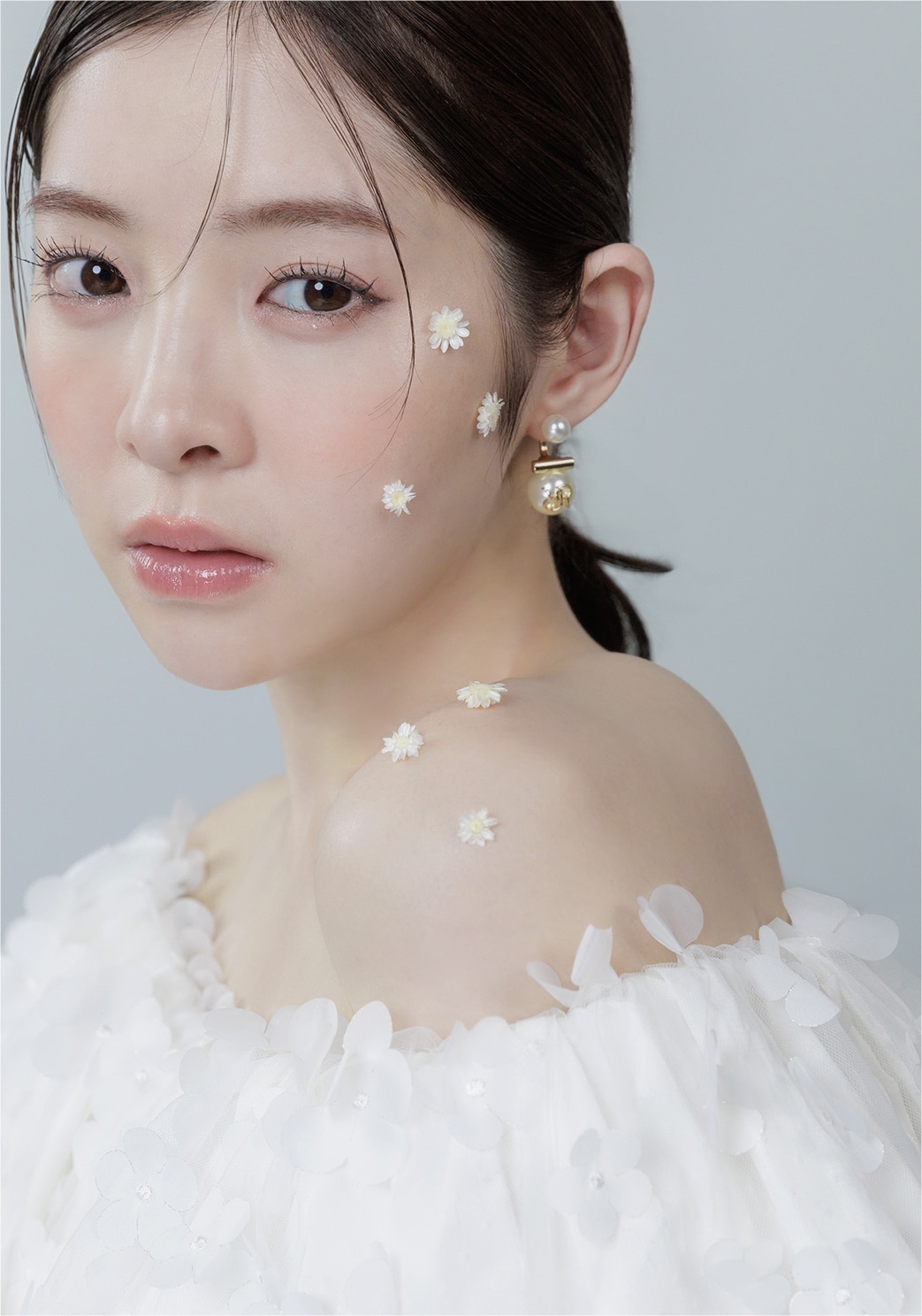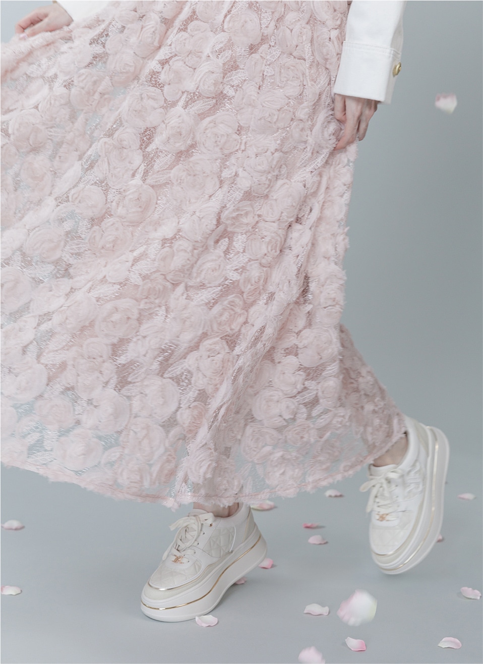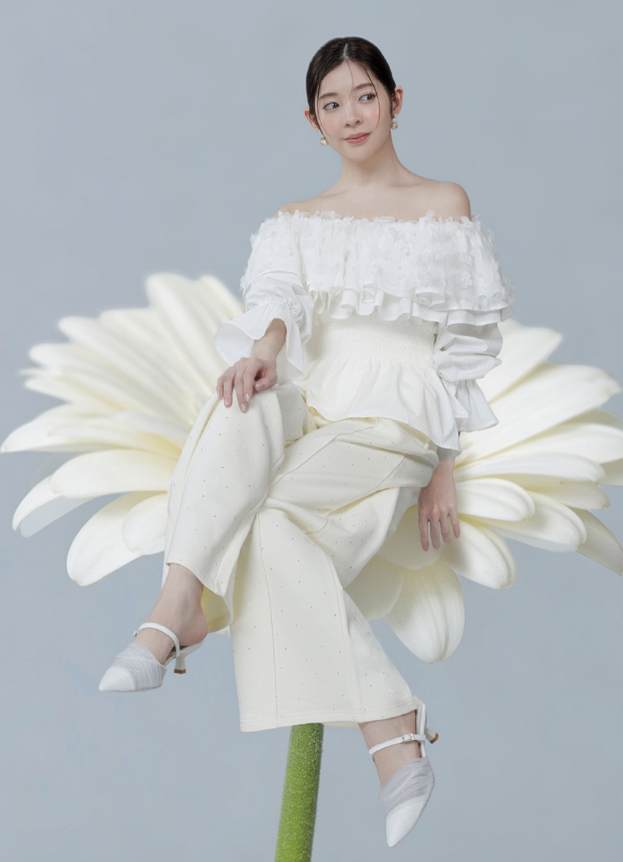 さりげないフラワーディテールが溶け合い