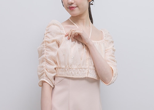 袖のないドレスにはストールやボレロなどの羽織ものを。