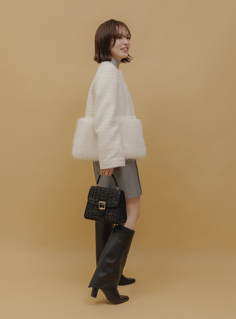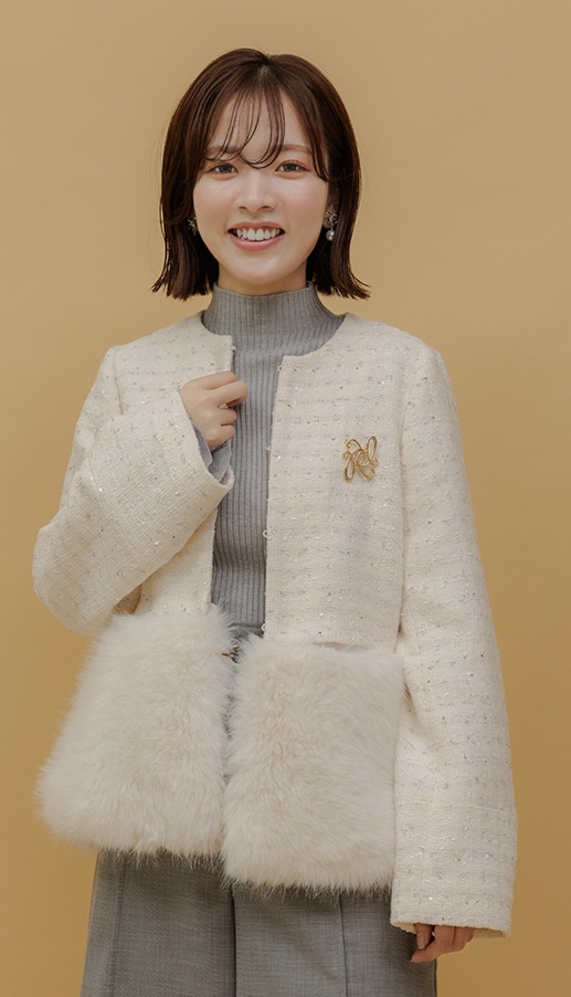 ふわふわのファーが華やかさをプラスして、羽織るだけで上品に仕上がります。