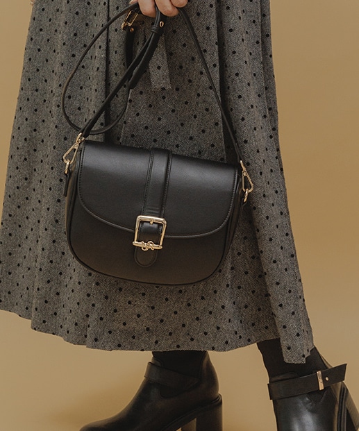小ぶりのバッグで全体を引き締めれば、オンオフ問わず活躍するスタイリングに。