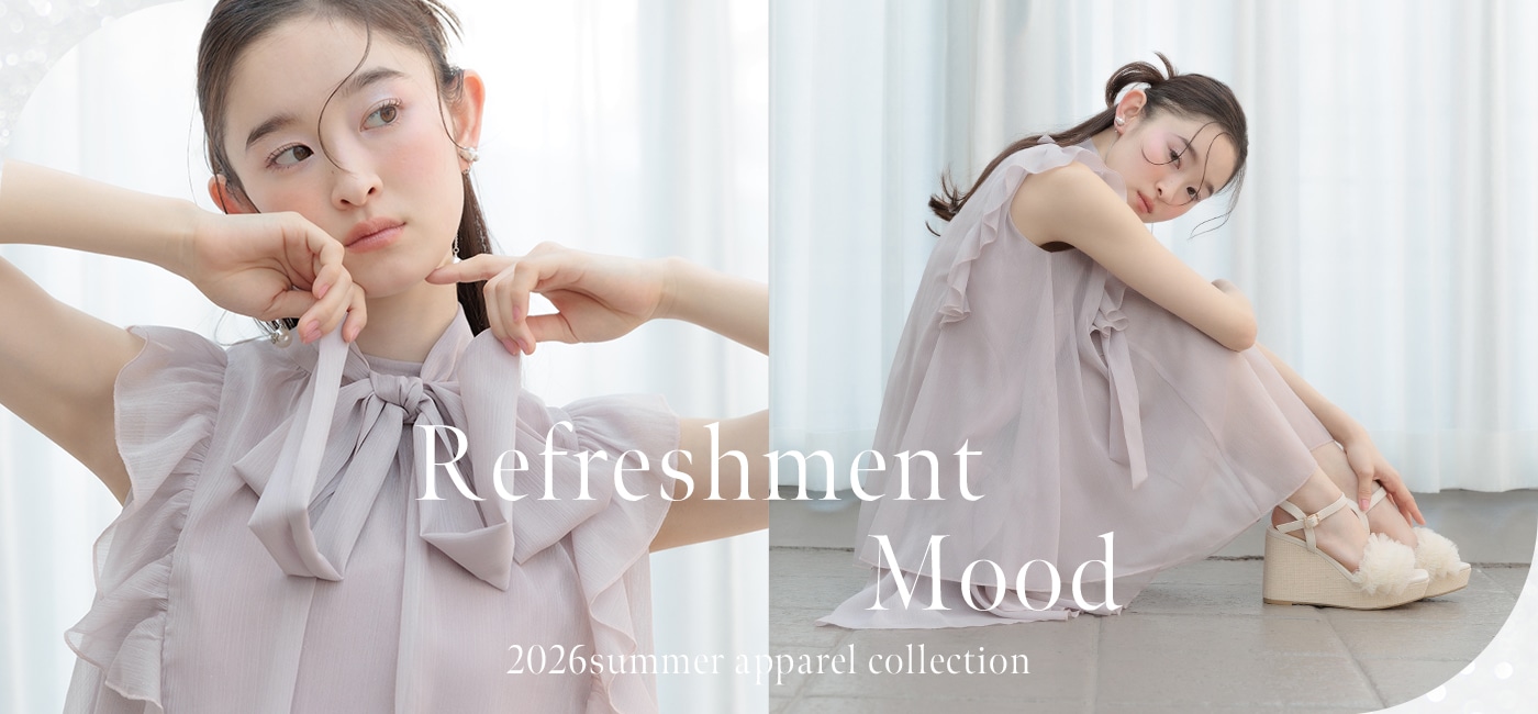 淡く澄んだブルーが、スタイリングにやさしく上品な彩りをプラス。