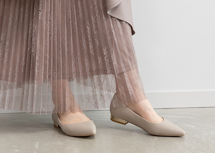 社会人は足元で人となりを判断されることも多く、締まりのない印象にならないように心がけることが必要です。オフィスカジュアルでも派手な色や素材、柄物は避けるようにして上品で清楚な雰囲気が漂うコーディネートを意識すると◎